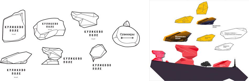 Suddenly, another idea is born: the stone as a pointer sign, etched writing, a warning sign. The logo remains recognizable when placed on various shapes.