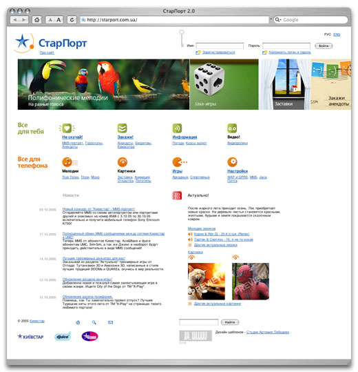 The design of website templates was ordered by Kyivstar GSM, a mobile operator.
