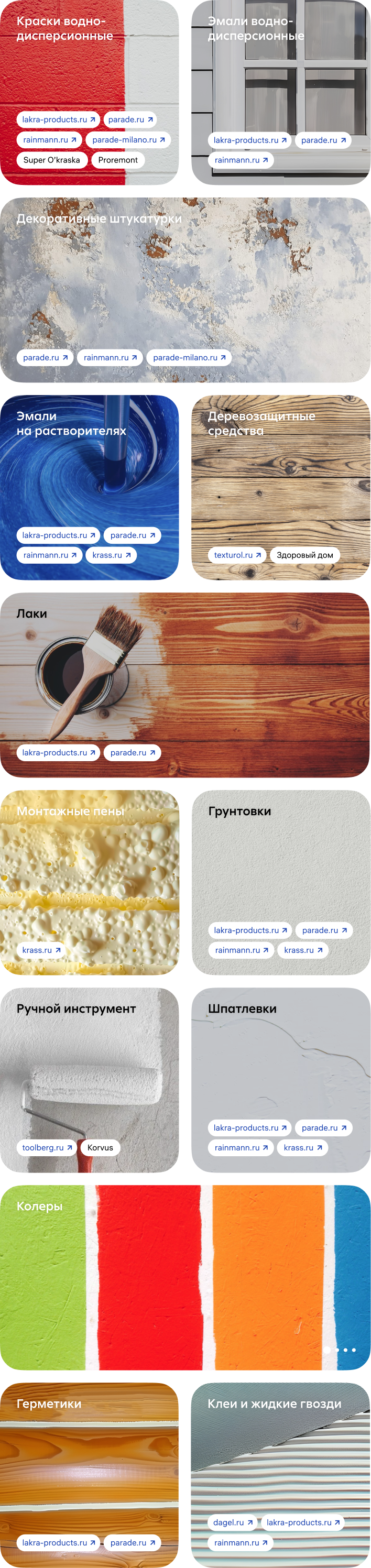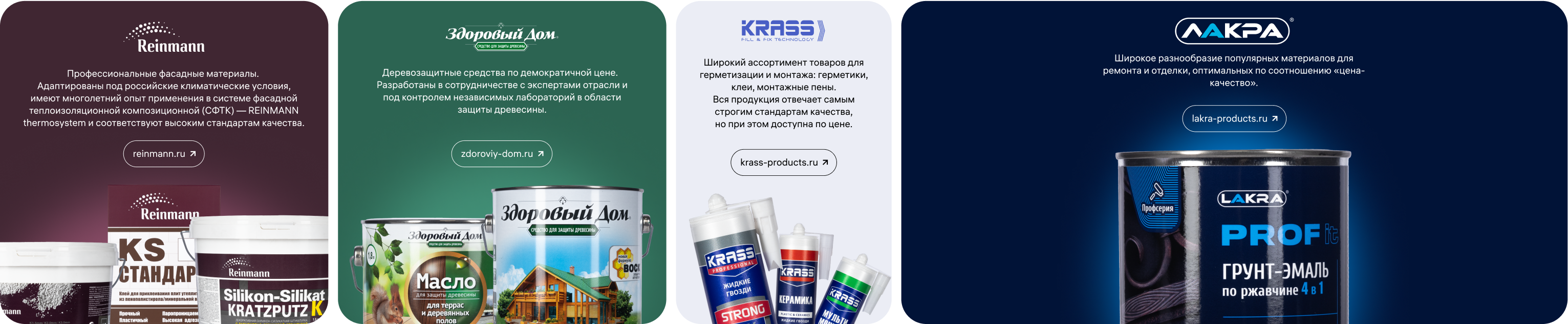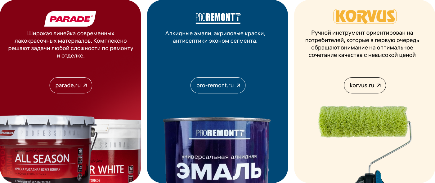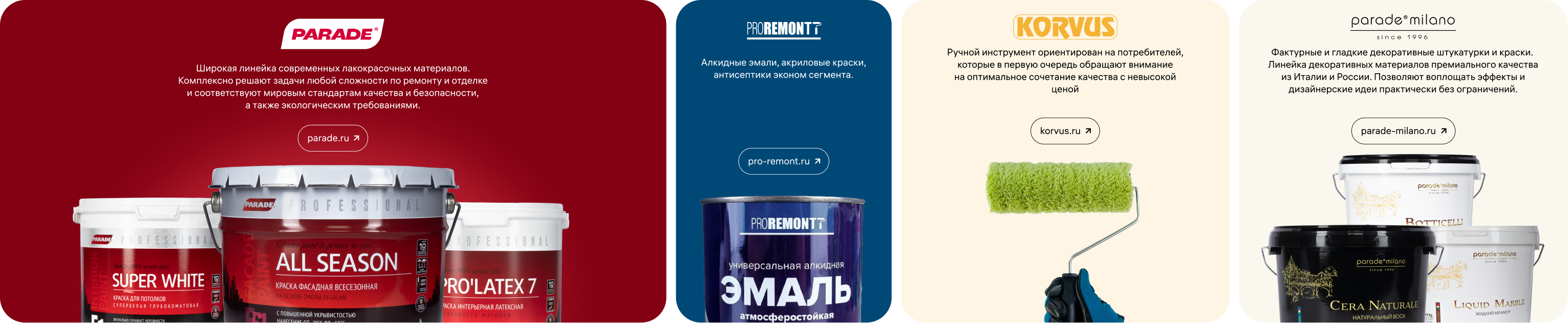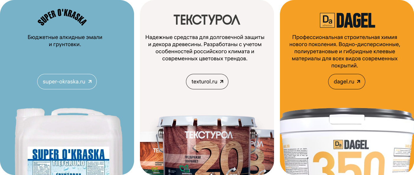 We also photographed the products of the company’s sub-brands—and also designed them as concise cards, divided by colors.