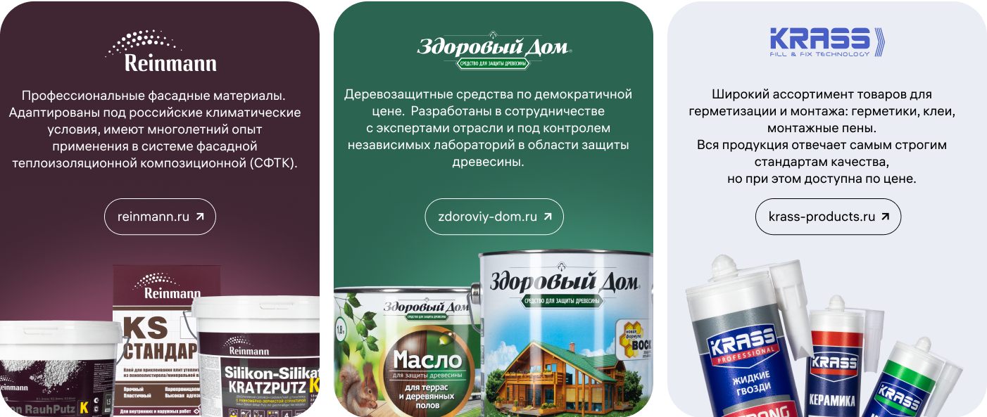 A separate page talks about the company’s areas of work: the advantages of each material, its purpose and application features— everything is described and shown in the smallest details.