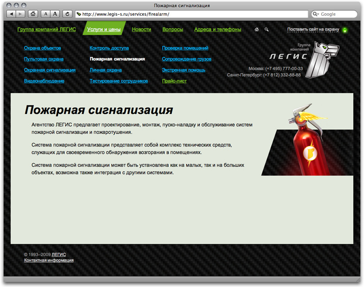 And of course the site tells about Legis’s services and clients. ![]() Fire alarm page