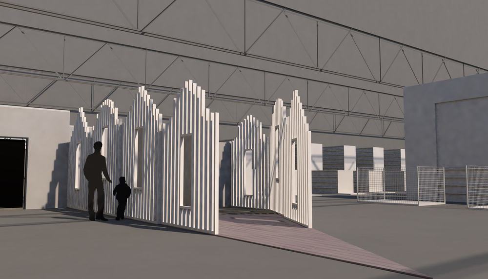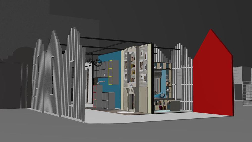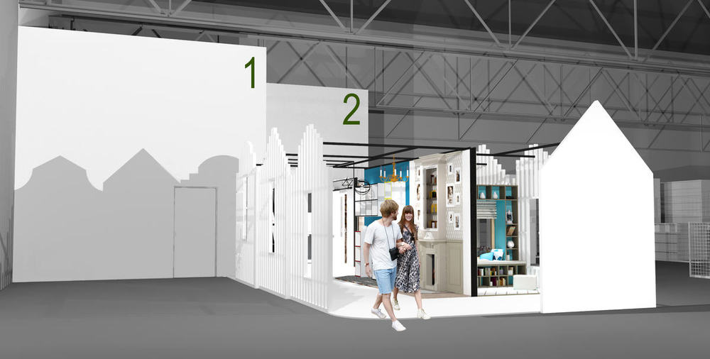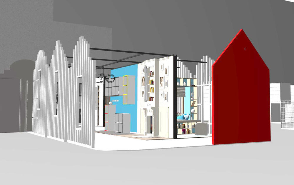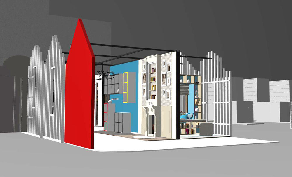 Placing a structure around the zone to visually separate it from the rest of the store. In the initial concept it is painted in brick shades.