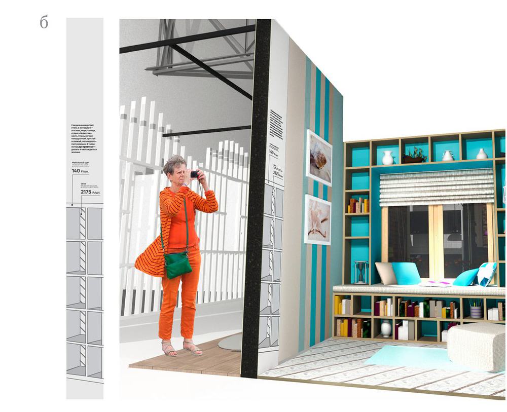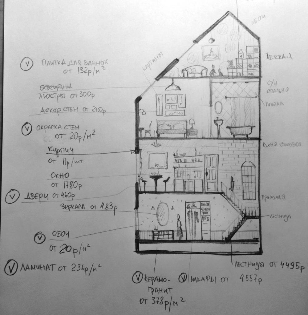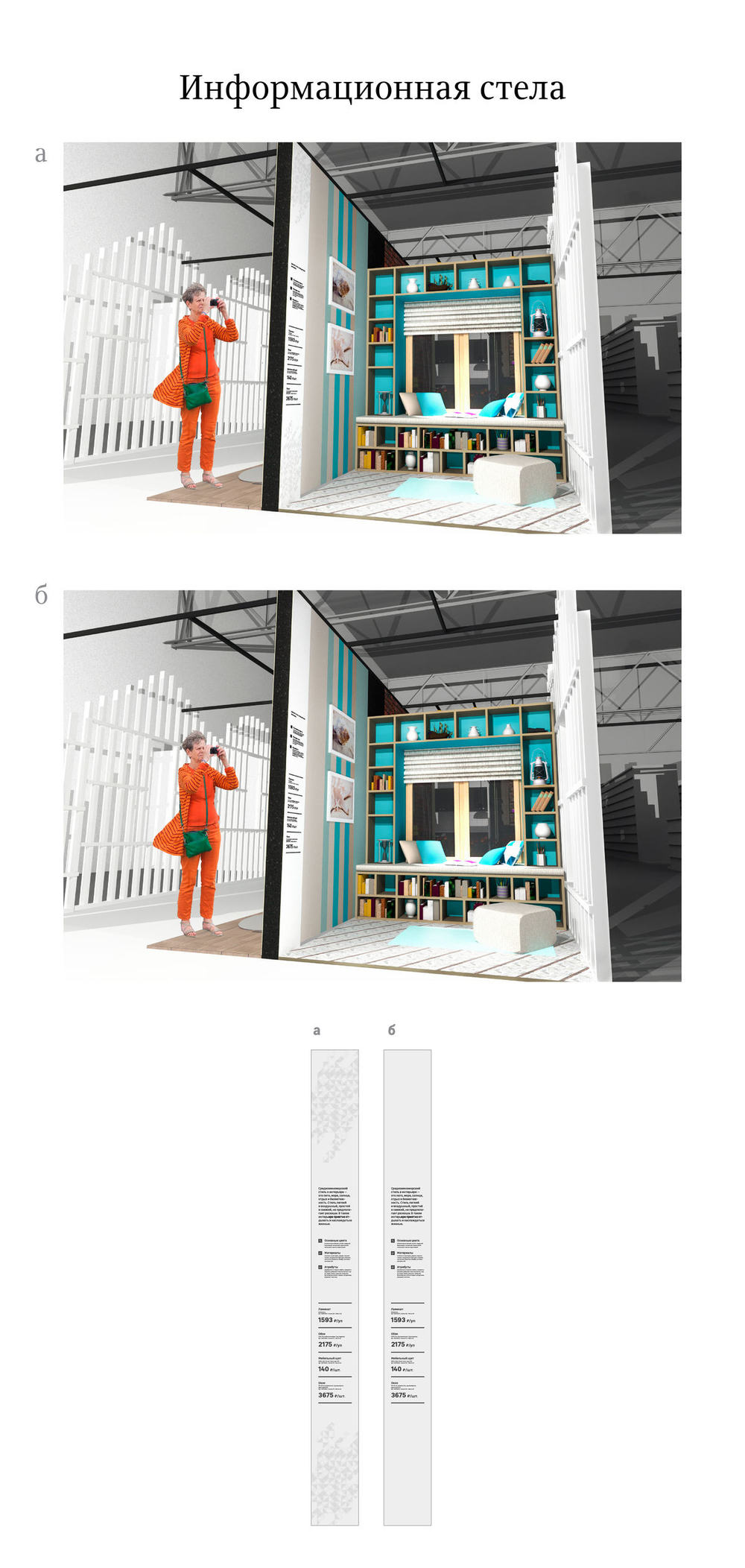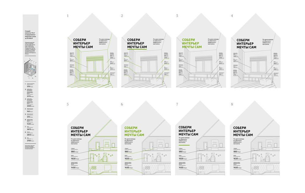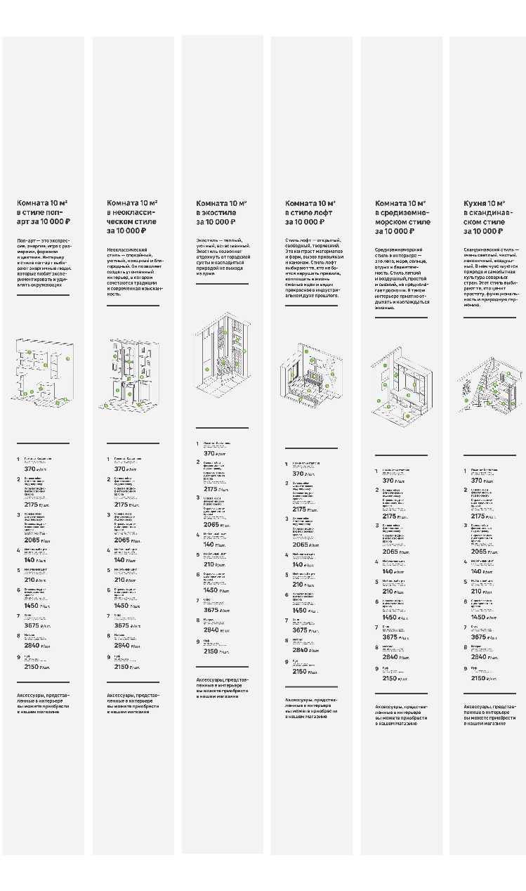 Choosing the first design with all words written on the same wall. Now we have a problem: how do we include prices of products used in the interiors.