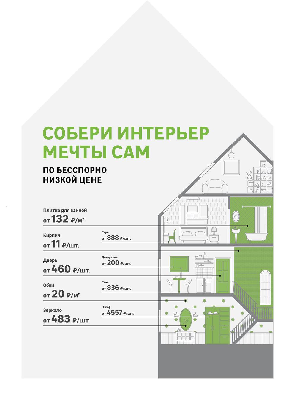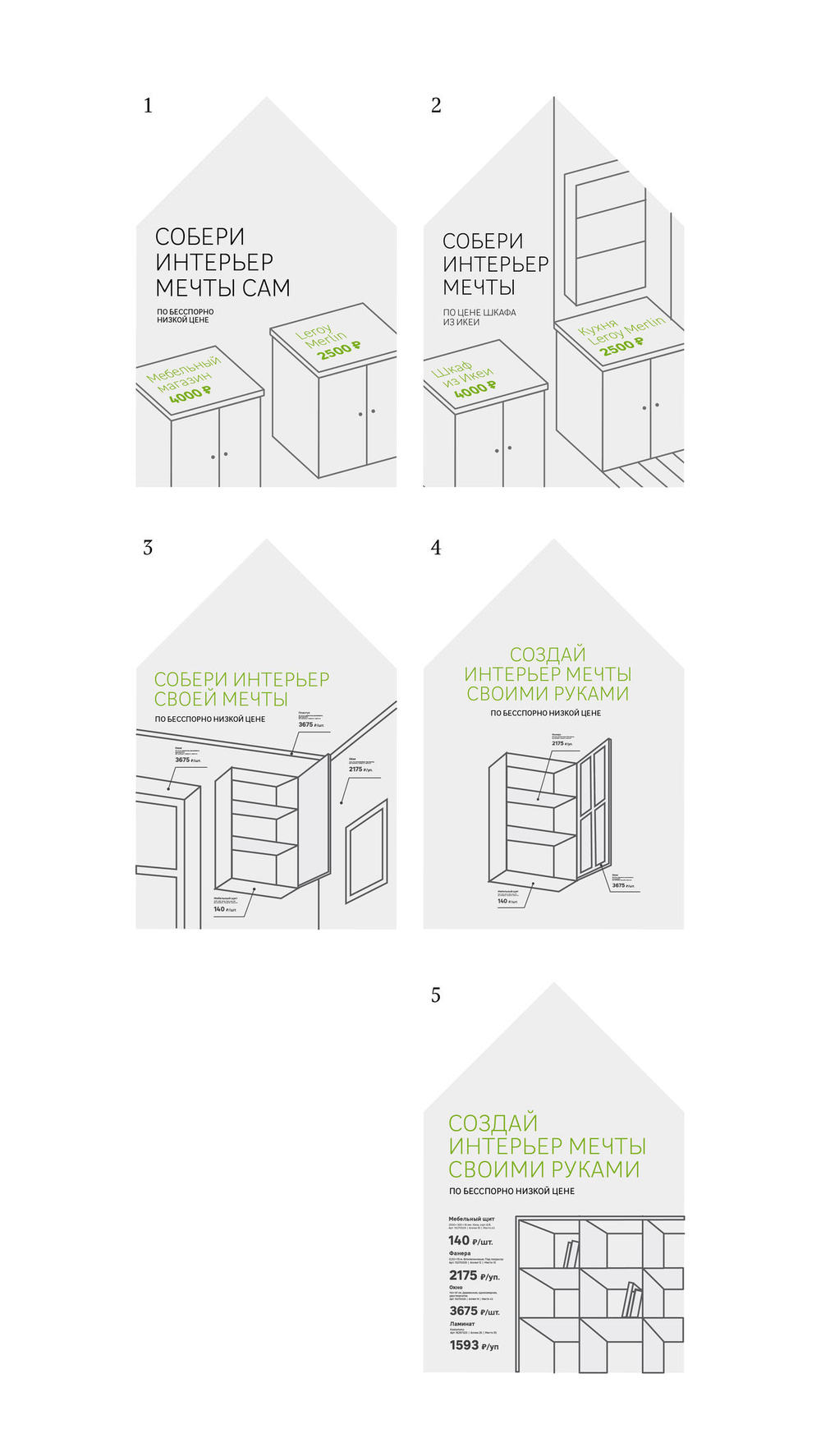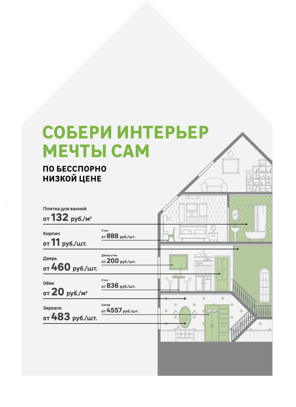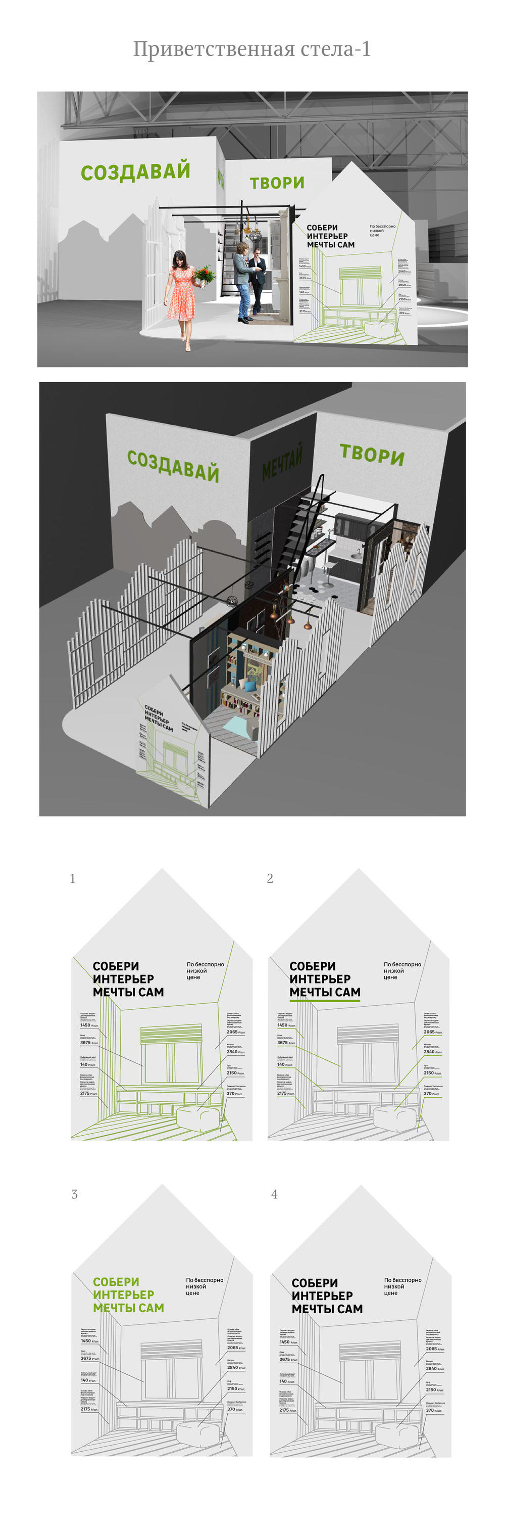 Getting the task. Getting acquainted with the client company and its features. Identifying the main idea we want to reflect in the project: each client can create the interior of their dreams using the affordable products offered at the store. Deciding to show the unusual application of conventional materials and realize different styles in interior zones.