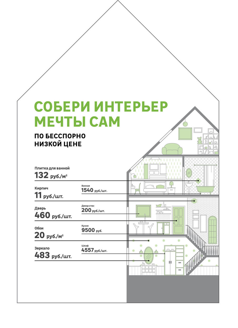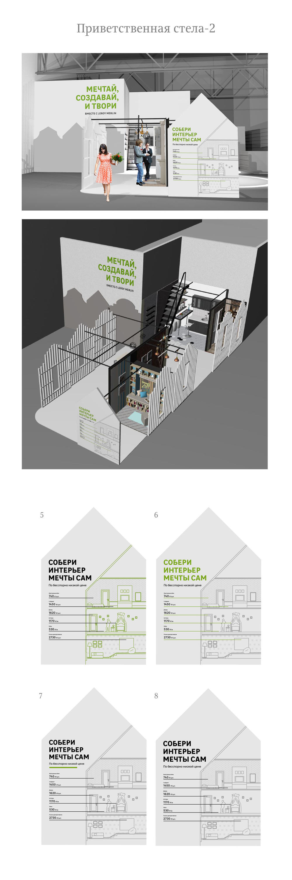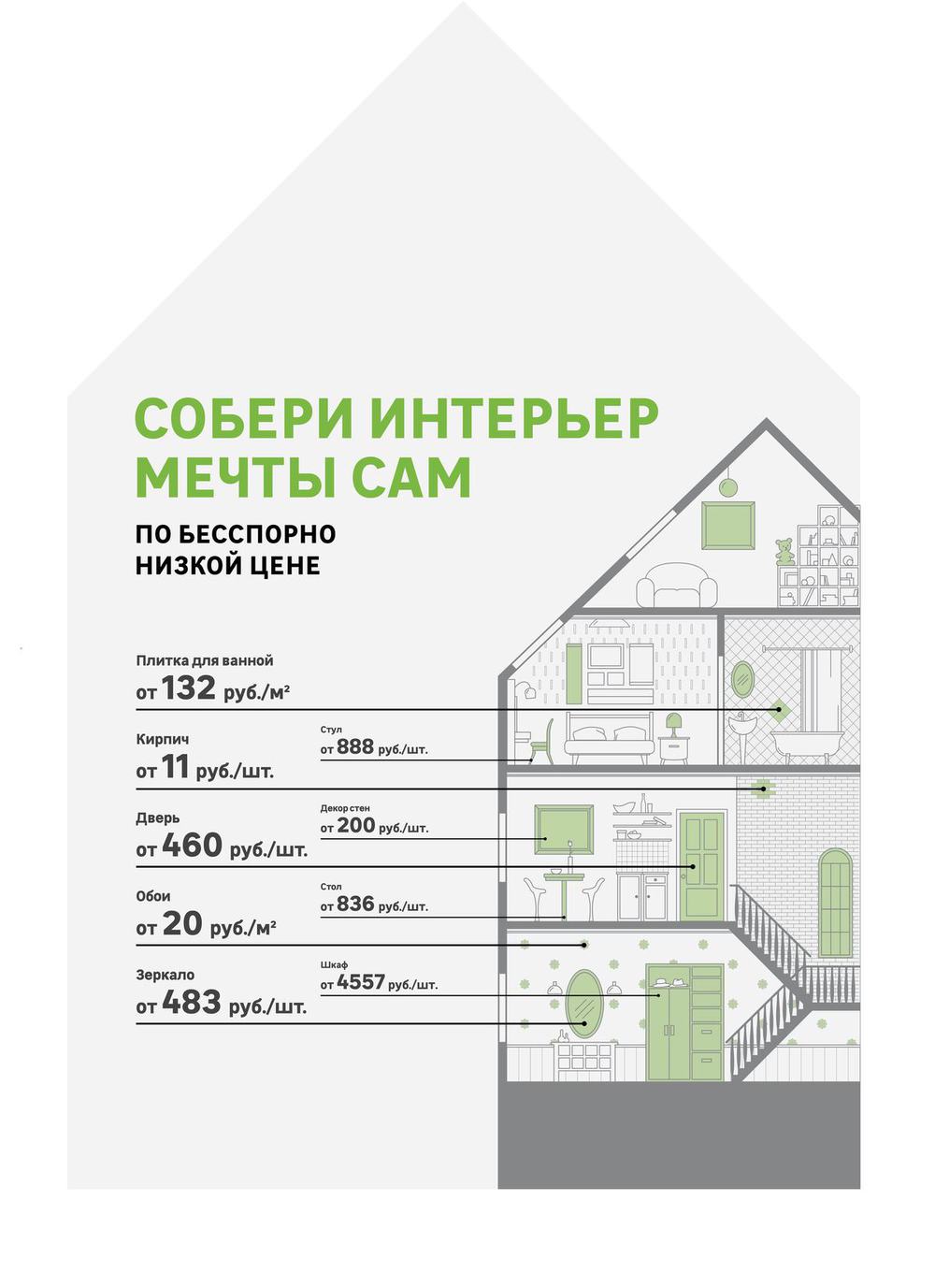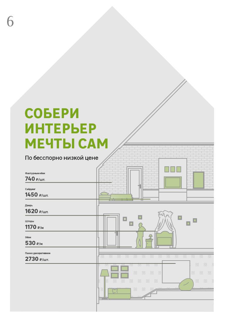 Getting the task. Getting acquainted with the client company and its features. Identifying the main idea we want to reflect in the project: each client can create the interior of their dreams using the affordable products offered at the store. Deciding to show the unusual application of conventional materials and realize different styles in interior zones.
