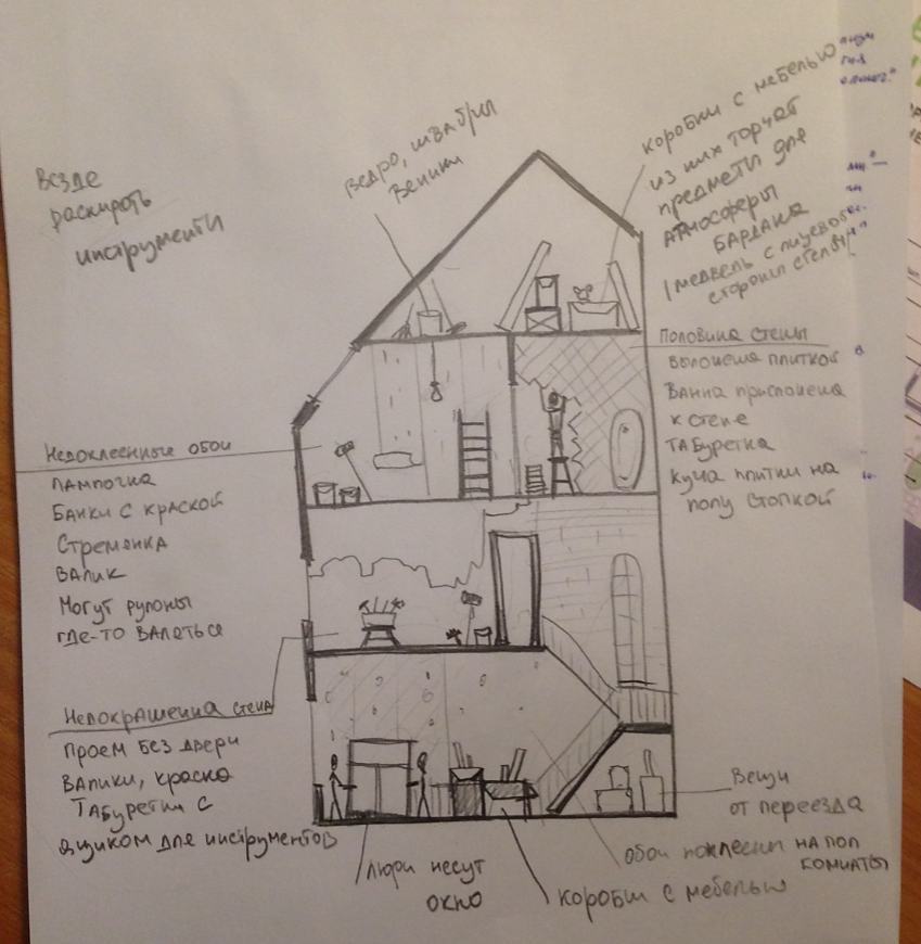 We also need to have something on the reverse. Drawing the same house but in the process of being renovated.