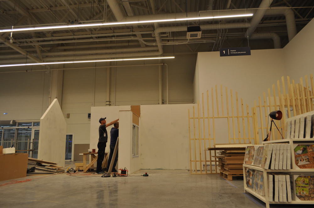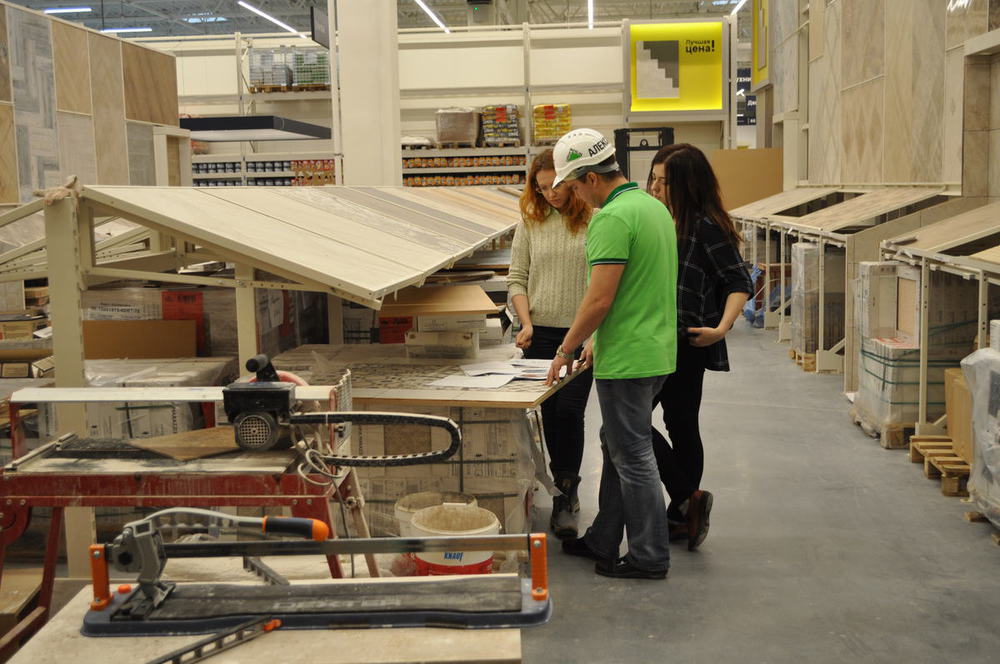 Spending the first day walking around the store, checking availability of materials required by the project. Answering questions about complex situations, clarifying details.