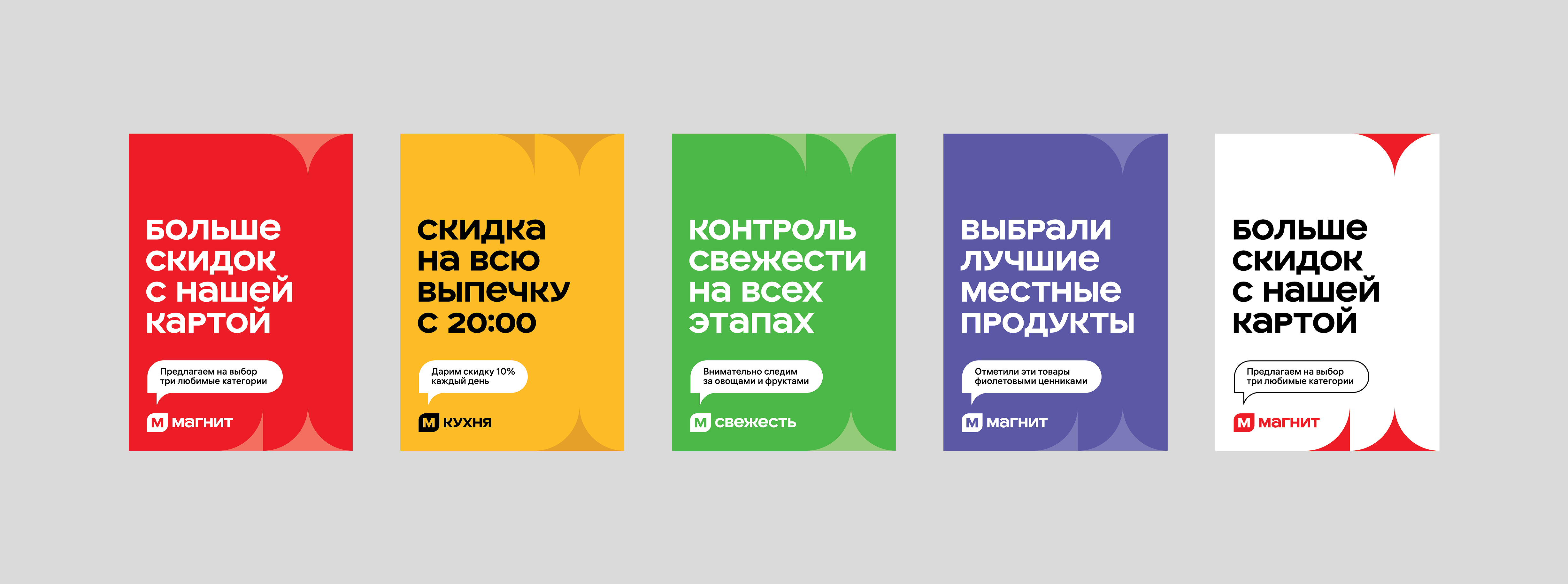 For this nationwide chain, we designed a new logo and developed a custom typeface, now featured on signage, interiors, wayfinding systems and advertising across all Magnit supermarkets.