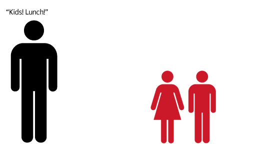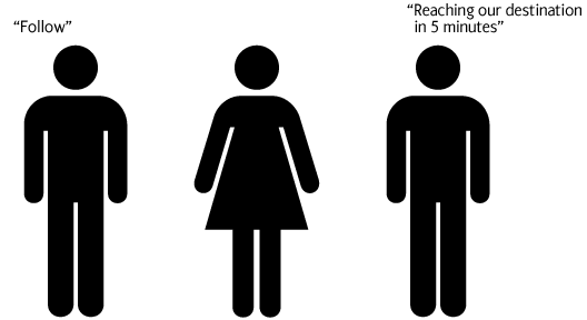 The easiest way to illustrate the principle of proximity is by using distance between people. Here a lady stands between two gents, and you cant say for sure which of them is closer to her: |