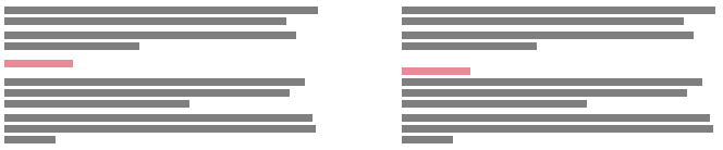 In practice the close because associated principle is violated in all sorts of design works, beginning with an ordinary layout. For example, a header is often placed so that its equally distant from the paragraphs above and below it. Although a reader mostly has enough grey matter to figure out where the header belongs, you had better get him to pay attention to contents rather than let him have a hard time making sense of the form. The header should always cling to the paragraph right under it. |