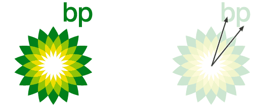 BPs logo is the exact opposite. We see a symmetrical, tranquil, extravert, sunny-flowery composition. The two key rays point straight at the two lowercase letters of the companys name. This is an example of dynamics combined with immense tranquility. |