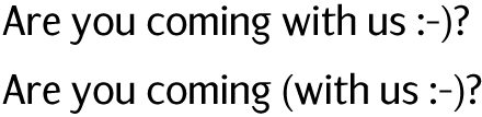 Particular attention needs to be given to spacing aroung the comma, the exclamation mark and the hyphen. In each of the examples below, corrections were made manually. |