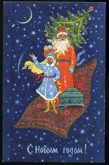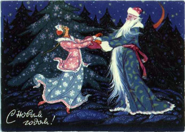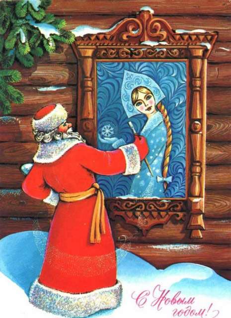 Ded Moroz has a granddaughter, Snegurochka, but Santa has no family. It was due to Snegurochka’s appearance as Ded Moroz companion that resulted in the latter’s change of coat color to red from blue, to provide a good contrast for the girl’s blue outfit. |