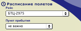The Bashkirian Airlines websites main page features a flight search form. The default value in each of the drop lists available is doesnt matter, which, in my view, is an example of a way too free-wheeling style for an airline. If you pick something in the flight field, you will see the following: |