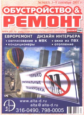 Before the tragedy takes places, a graphic solution capable to give rise to misgivings may be a cause for irony. A tragedy that has happened is a cause for a post factum negative interpretation. We will not consider in detail the cases when say any picture of the World Trade Center formerly located in New York is no longer viewed as just two huge skyscrapers. Innocent is the designer who made a construction company advertisement that was released on the front cover of the Obustroistvo & remont weekly just days before the shocking event. |