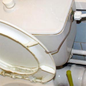 At the third stage laymen come up with an impromptu solution before a designer arrives. Heres a metal hook, for instance. Its job is keeping the toilet seat raised as it cant stay upright: |