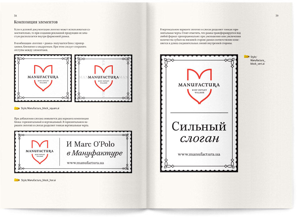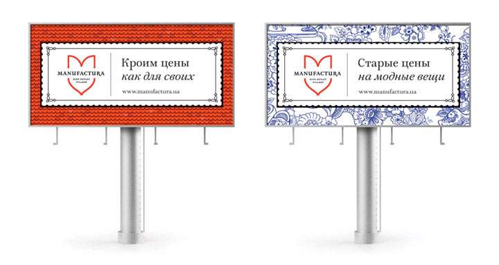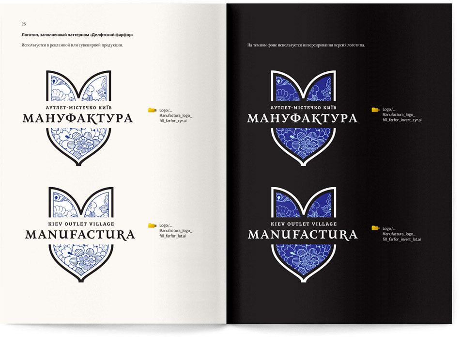 Manufactura is the first outlet center in Ukraine designed as a traditional Dutch town with narrow streets, brick houses, tiled roofs and a front gate. A logo and a corporate identity for the town were created at the studio.