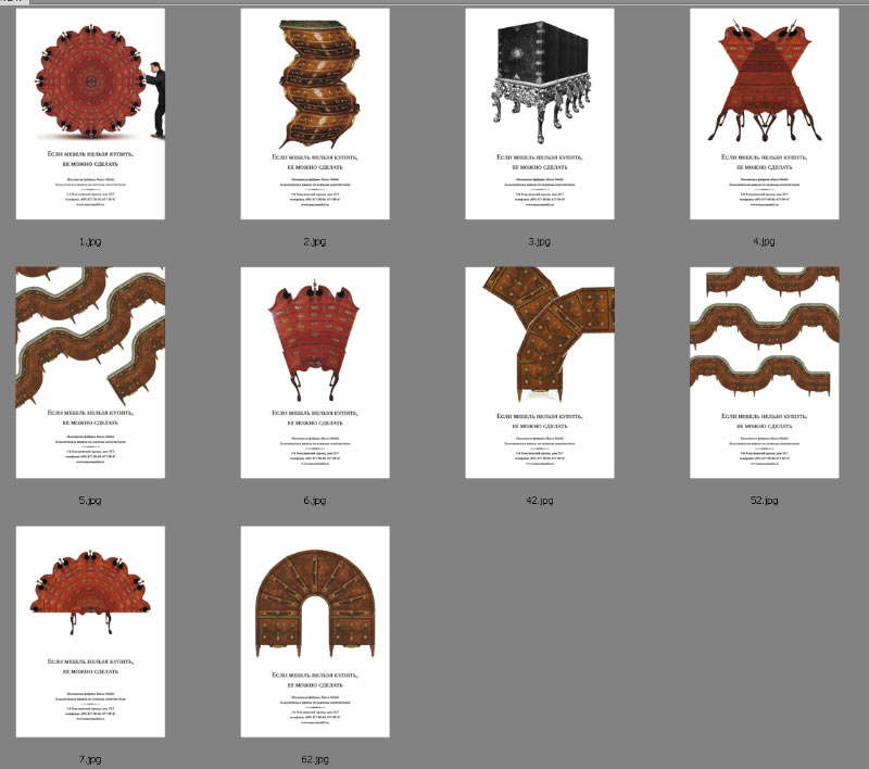 Creating suited images. “If furniture can’t be bought, it can be made.” Illustrations showing non-existent pieces.