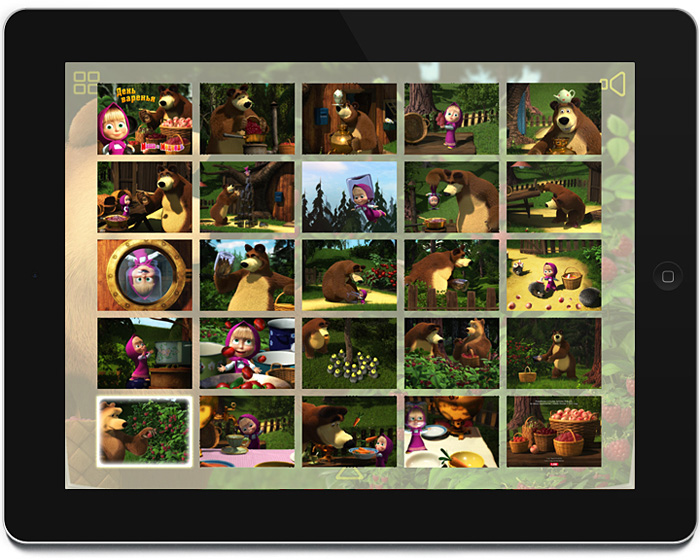 Each page stores some fun for your kids: tap on the bear’s nose, upturn a bushel of raspberries, or, for a change, make some jam with Masha.