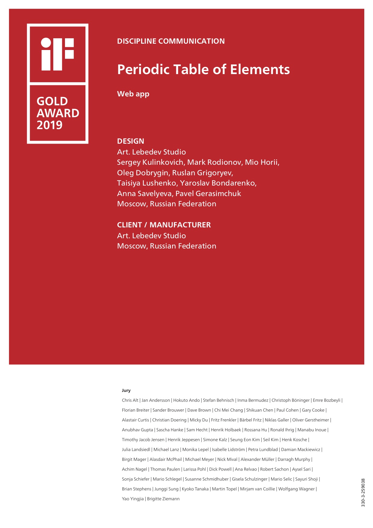 The periodic table of elements created at the studio was awarded a Gold iF Product Design Award.