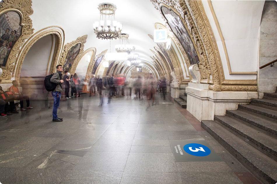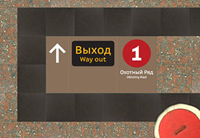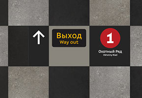 The main priority is to blend navigation elements into the surroundings without ruining the appearance of vestibules. The signs must become a natural addition to station interior, helping people find their way around.