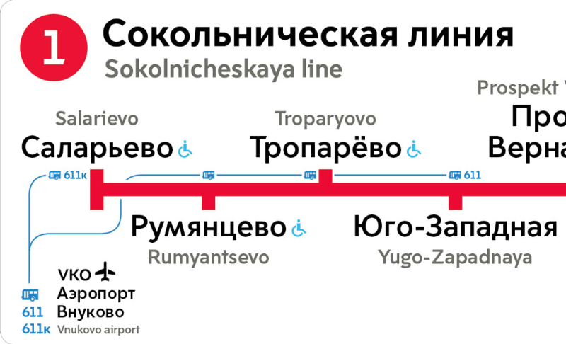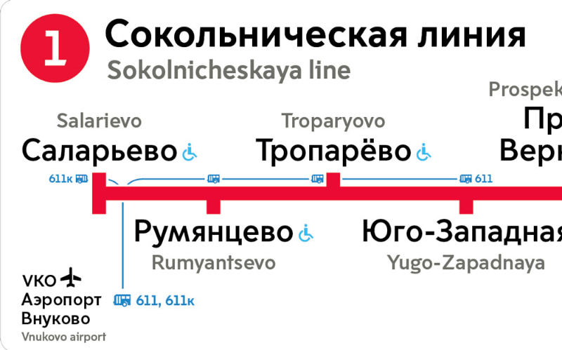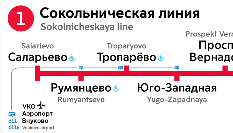 You can now get to Vnukovo from Yugo-Zapadnaya and three other stations. Sketching ways to show these routes.
