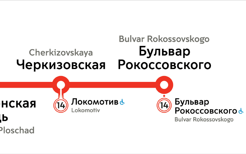 We start with the purple line. We need to change the icons and the typeface, add line numbers to transfer stations, deal with proportions and distances and synchronize line maps with the car map: the line maps are seriously lagging behind now.