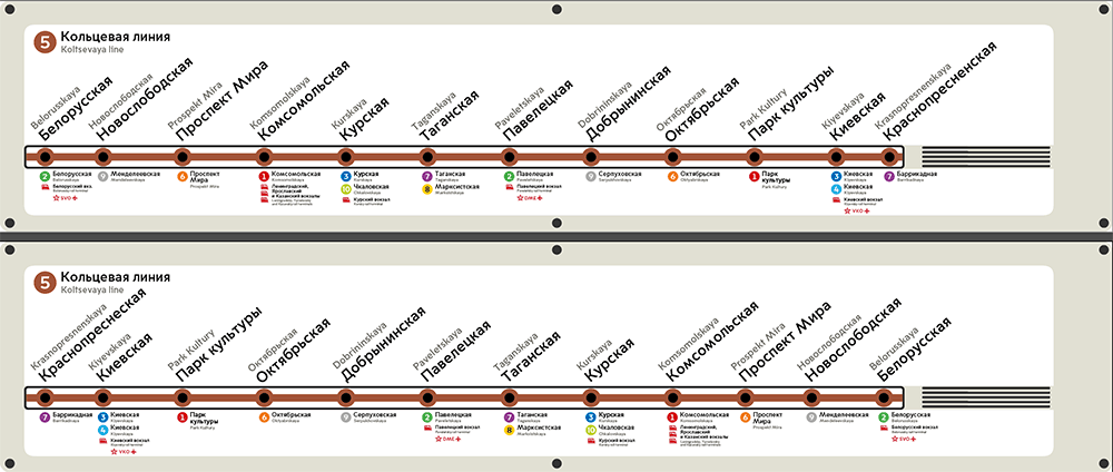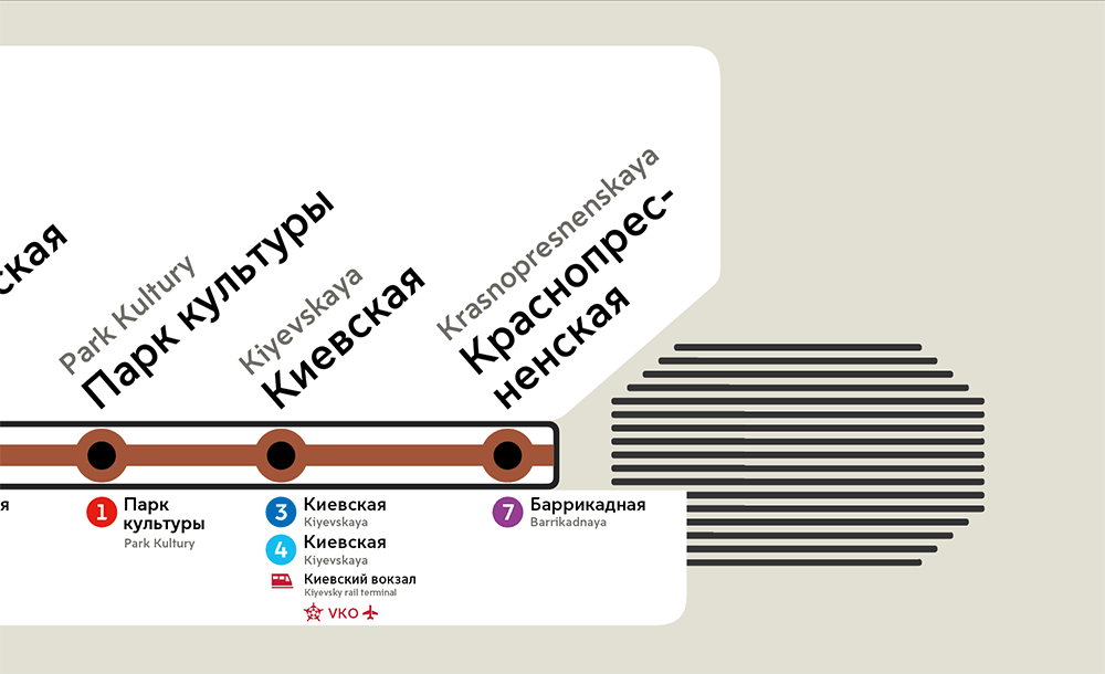 The simplification is too radical: it doesn’t work well without the name of the railway terminal. When you see railway terminals both to the right and left of the Circle line, it’s difficult to understand which one is which. Now the labels and massive elements are gone, while it is still easy enough to understand which railway terminal the Aeroexpress departs from.