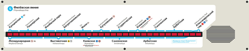 Super! The next day we get the news that we can’t cover the speaker at all due to safety regulations. All right then. Retypesetting the maps so they don’t cover the speaker. All that’s left is to finish the Filyovskaya line map. There are two different routes a train can take after Aleksandrovsky Sad. If the train goes to Kuntsevskaya, each station is represented by three LEDs on average, but if it goes to Mejdunarodnaya—by five. There are two routes but only one LED strip to show them both. We need to come up with a way to show the current route. Trying to match stumps and circles on the same map. What if they just happen to align nicely?