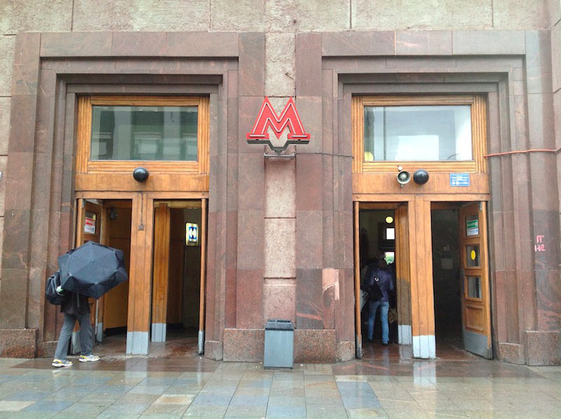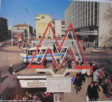 Logo in front of the entrance to Pushkinskaya and Gorkovskaya stations, 1970s |