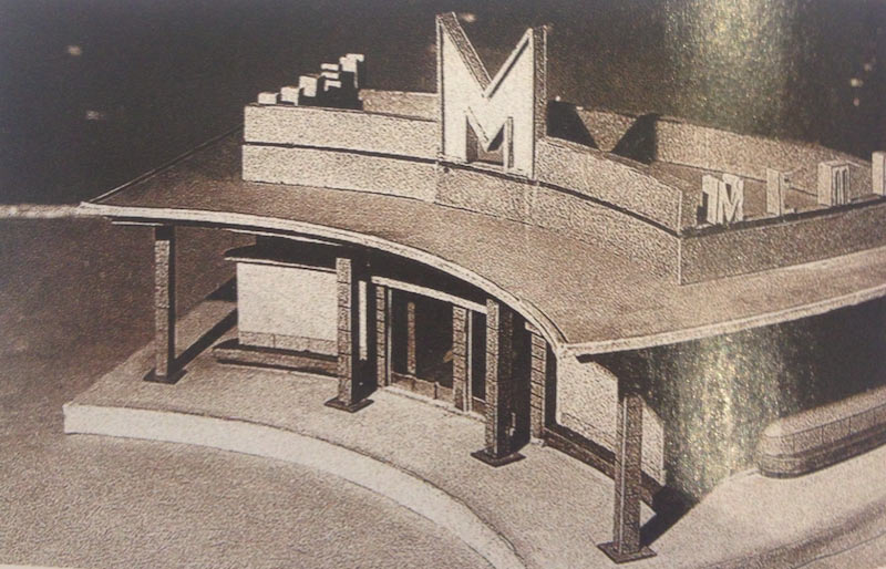 It was then decided that the emblem should instead be created by the Metro administration. The task was given to the same architects who designed the first stations. According to surviving documents, the presumed author of the logo is architect I. Taranov who together with his wife N. Bykova was working on the appearance of Sokolniki station. Taranov was also involved in creating projects for ten more stations and even develop a design for a two-level station. However, while the work on the new logo was under way, there had to be a way to mark station entrances. They were quickly marked by makeshift “Metro” text signs with the text written in different styles and sizes. The design of some station entrances already included this text. When the logo was finally finished and the technology of night-time illumination tested, the new emblems were installed along the old text signs which were also illuminated.