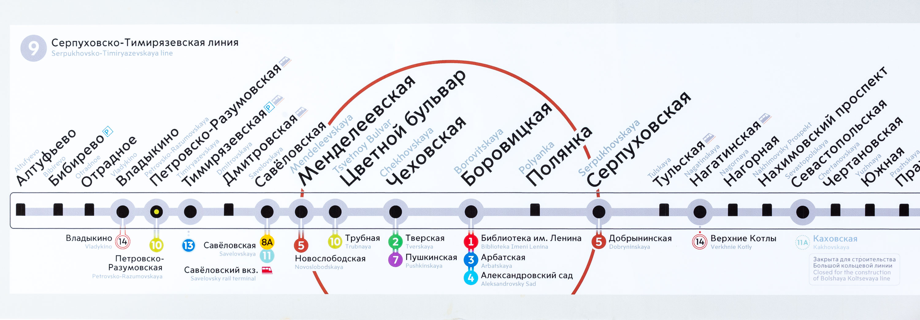 Central stations are by far the most popular which is why we decided to make them more prominent. This was done in a pretty smart way: we increased not only the text size but also line thickness and the size of station and interchange markers. This new emphasis makes the map more beautiful and convenient.