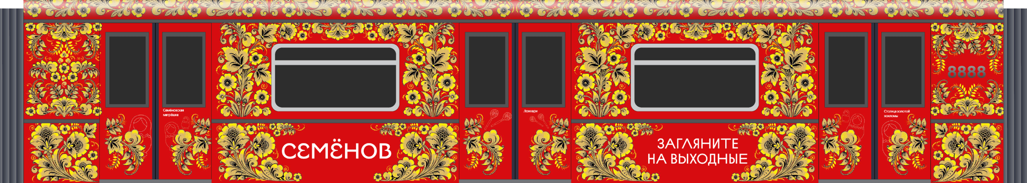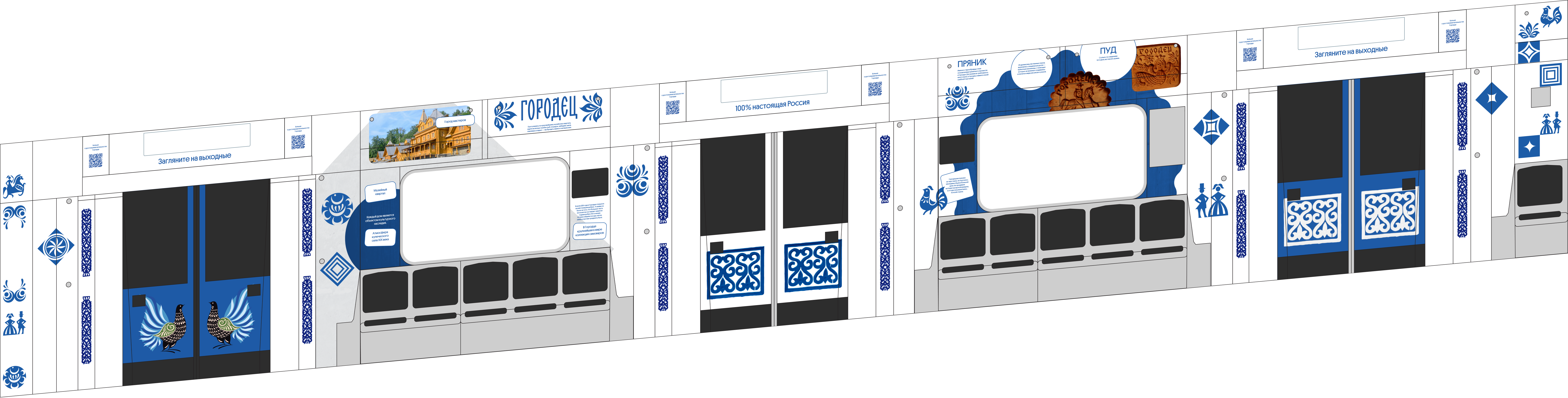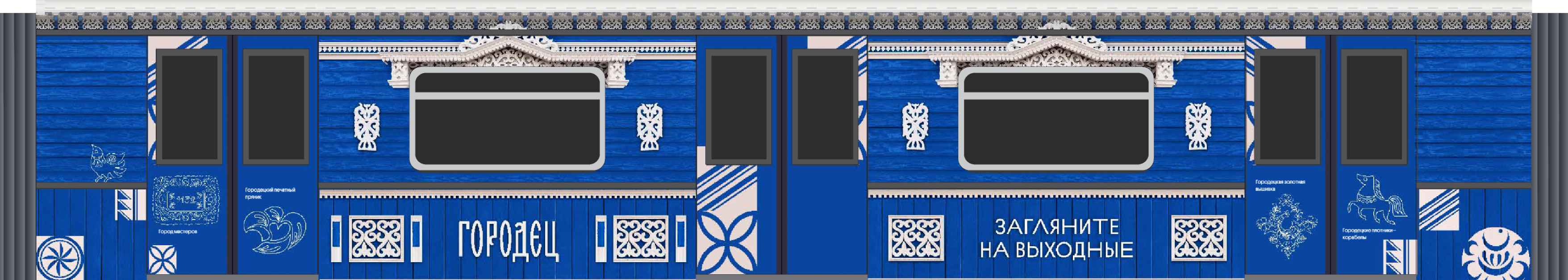 A train dedicated to five cities and two villages of the Nizhny Novgorod region was designed in the studio. It shows local cultural features and thus attracts even more people to spend the weekend in the “pocket of Russia.”
