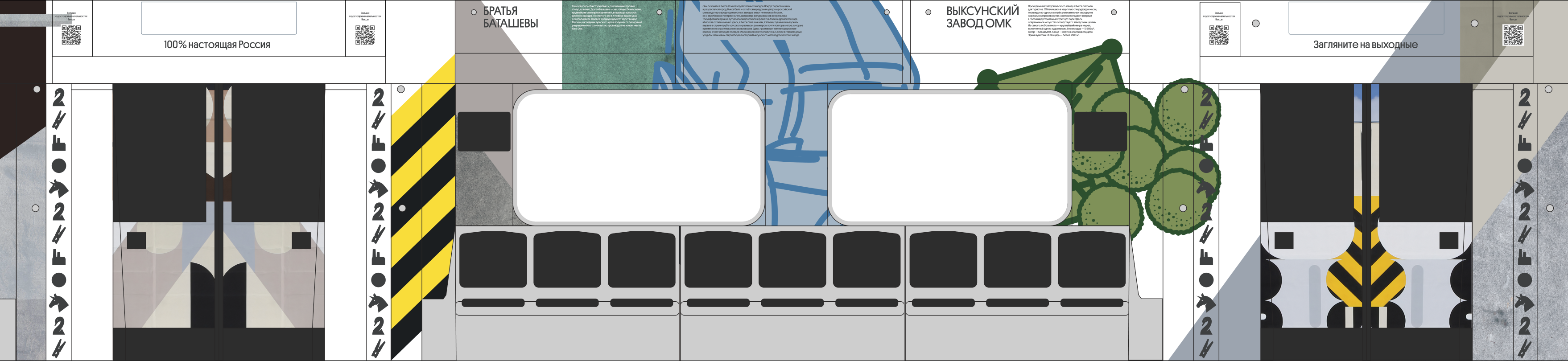 It’s impossible to introduce Vyksa without mentioning street art and industry: the car is decorated with elements of murals and signal coloring.