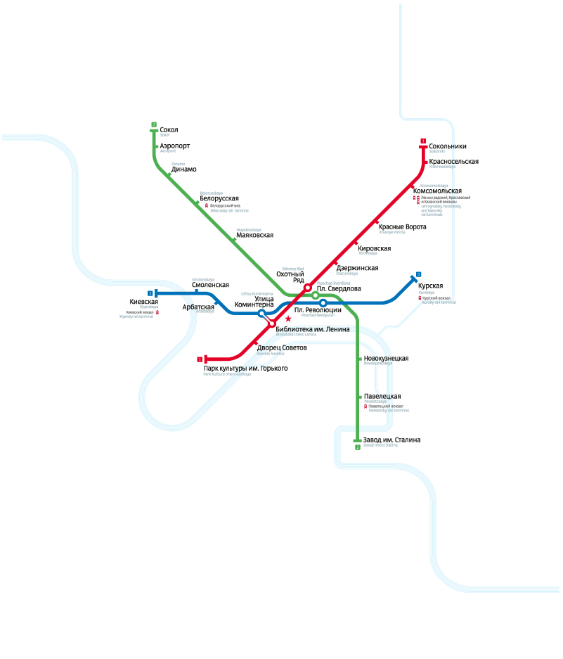 We have won an open competition for developing the new official Moscow Metro map. Meeting with people from the Moscow Department of Transportation to determine the project’s phase one size: maps for five types of metro cars, Moscow Metro rules, and a map version for Info-SOS emergency call kiosk.