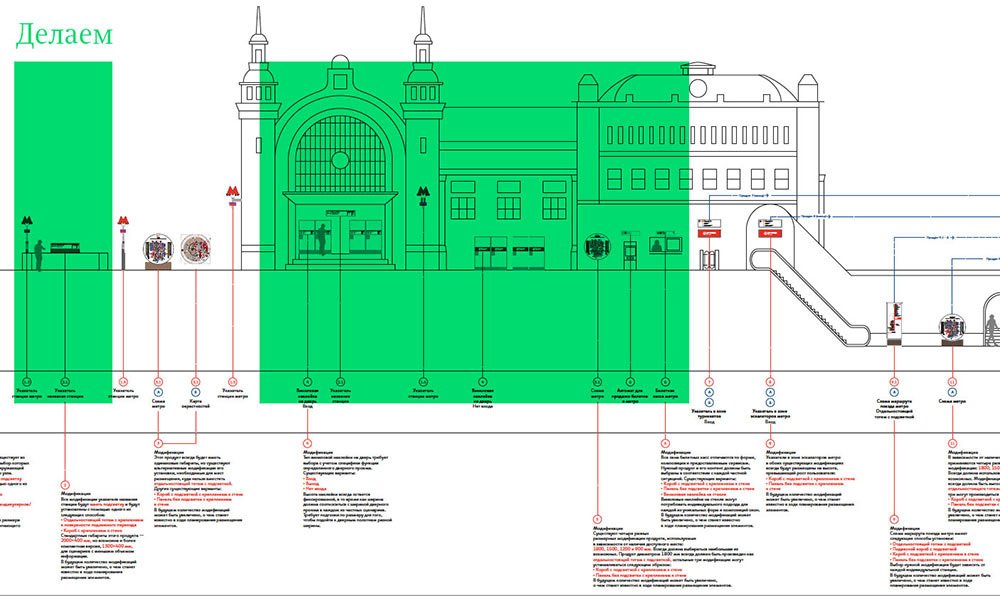 The project is tied to the renovation of passageways, overall there are 96 stations. There isn’t much time, the first mock-ups should be done in a couple of weeks, but first we need to propose changes to the concept.