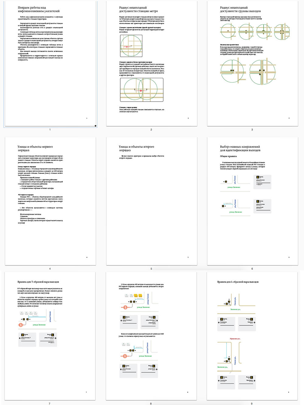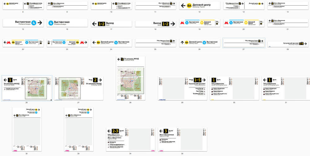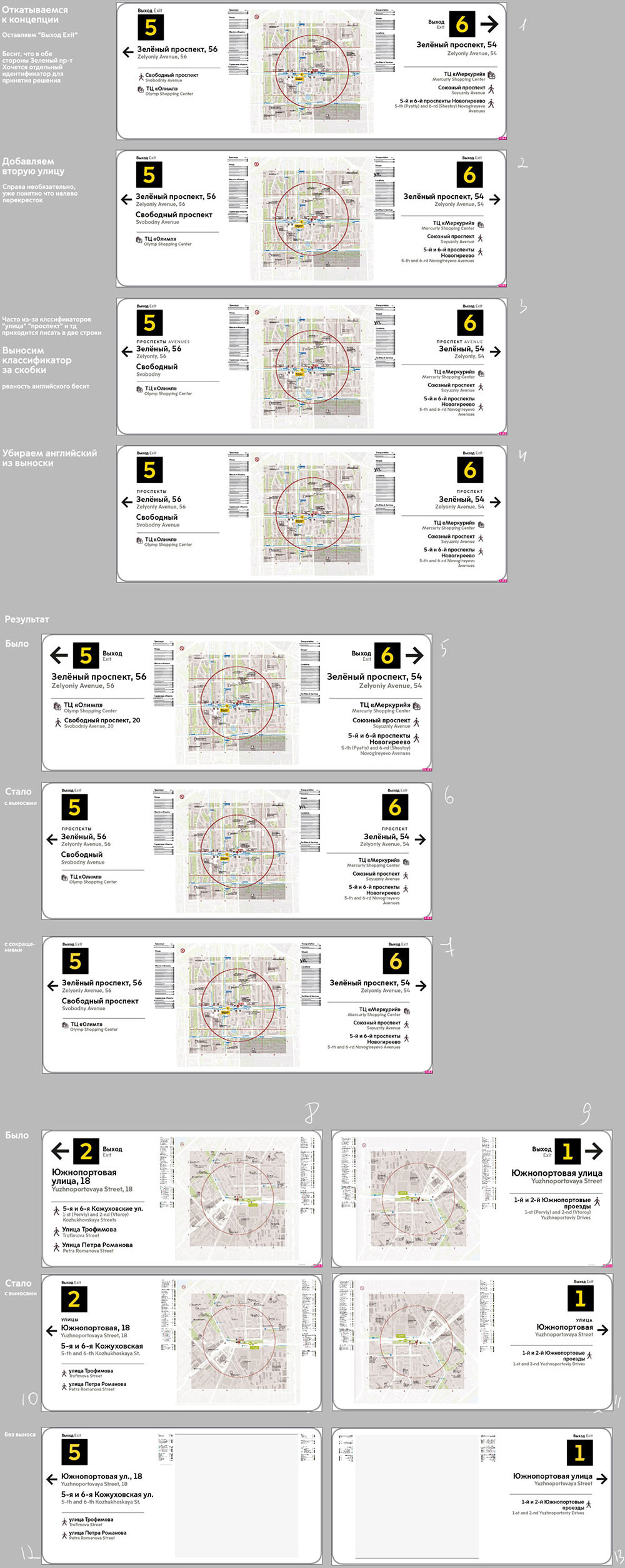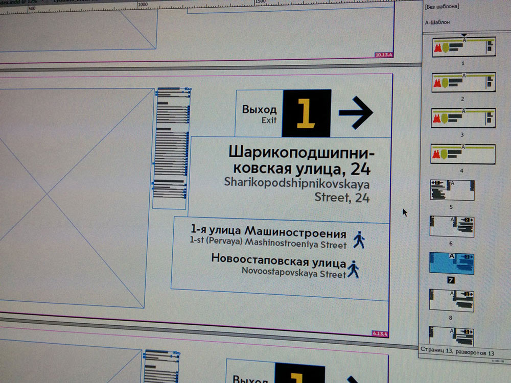 Starting to typeset signs for the stations. Sign placement has already been decided, we only need to provide the contents of the signs and their mock-ups. Simultaneously the client’s team explains their understanding of sign design while we explain all the decisions we made in the presentation. Making changes and sending the designs for the first stations.