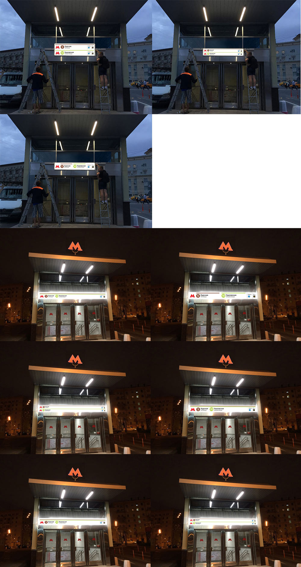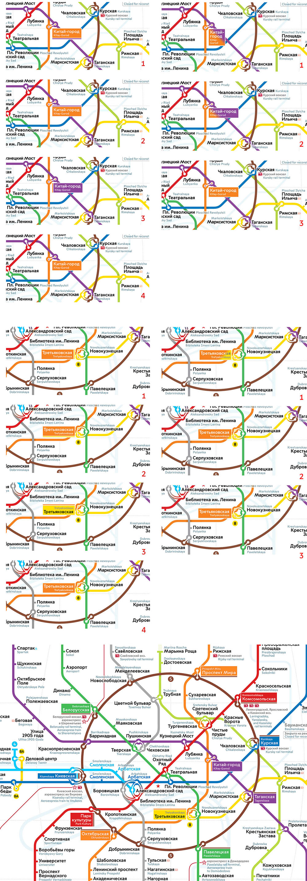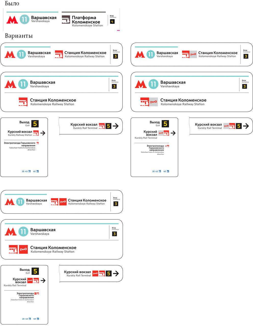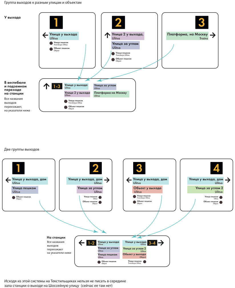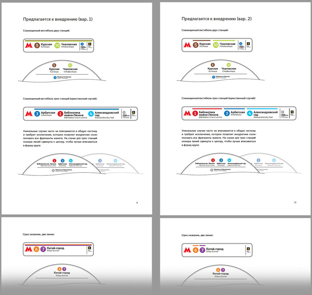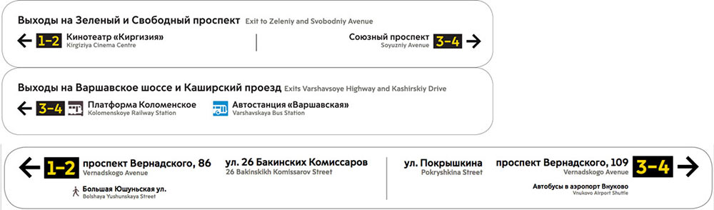 We don’t know how to typeset signs for entrances to several stations (for example, one entrance can lead to both Kurskaya and Chkalovskaya or to two Kurskaya stations on different Metro lines).