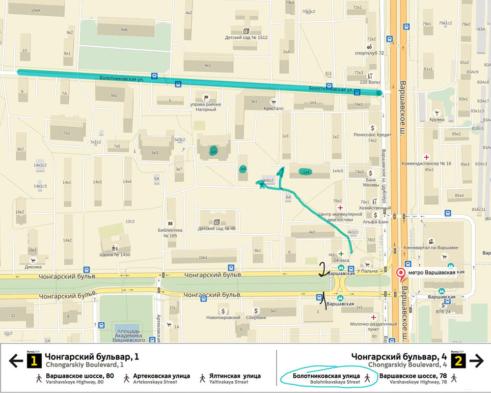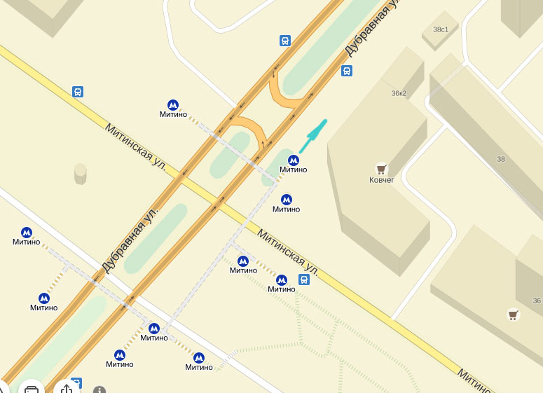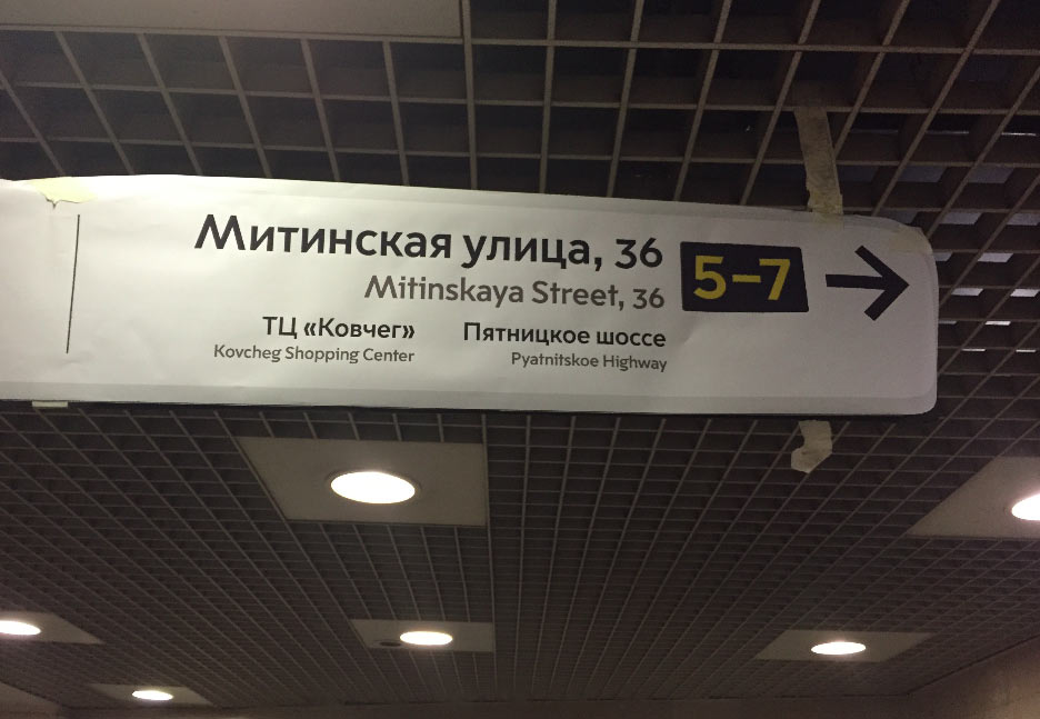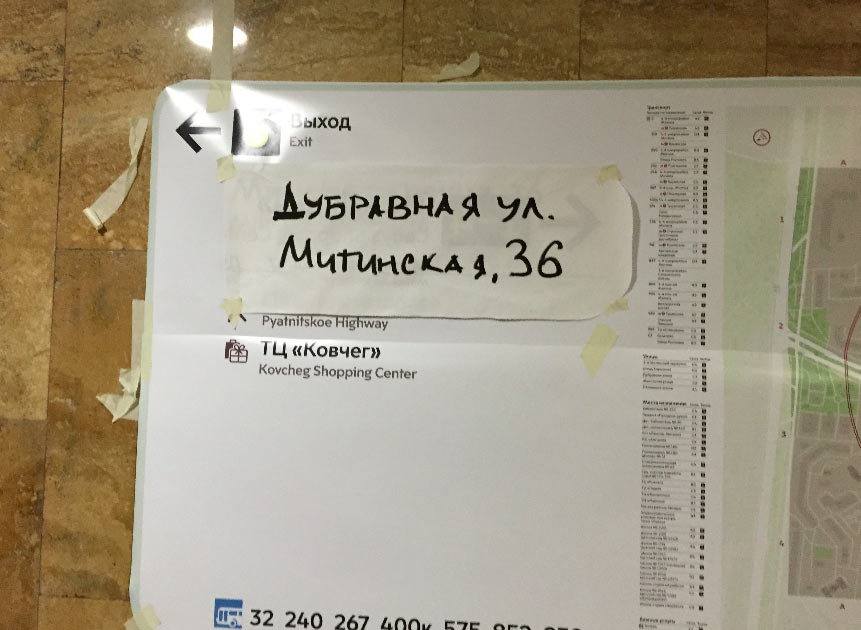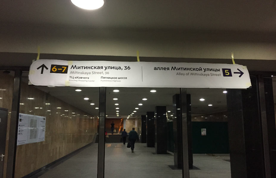 Also testing exit names: we need them to be directly associated with what pedestrians will see once they follow them. It works, the association is there. Which means we should always start with the street. For example, exit 6 at Mitino station: Mitniskaya Street used to be the main reference point, although the exit is parallel to Dubravnaya Street.
