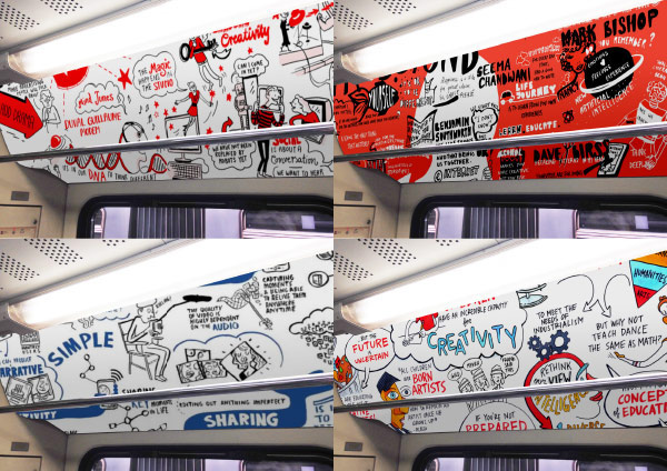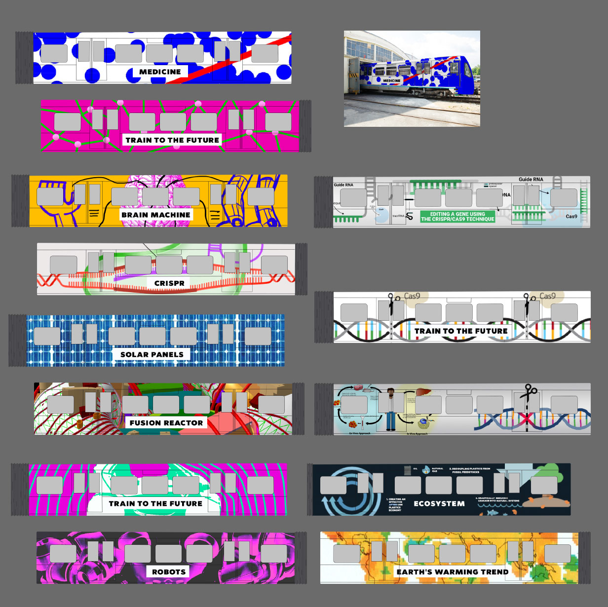 The second idea is to consider using pop art elements on the exterior and make the train bright and colorful. Still, the theme of science and Britain has to be maintained without going too much into digital.”