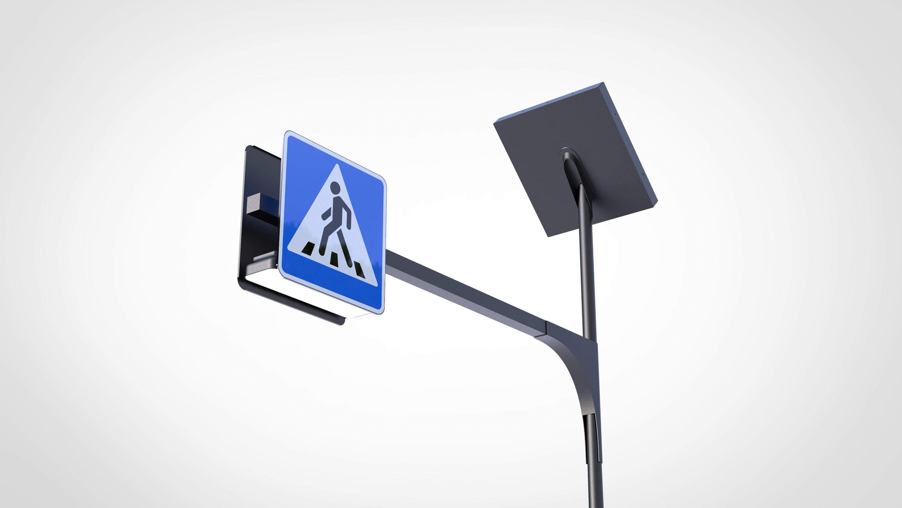 The new poles are laconic and stylish. They can accommodate several signs, traffic lights and electronic displays cutting down the number of poles required at the intersection.