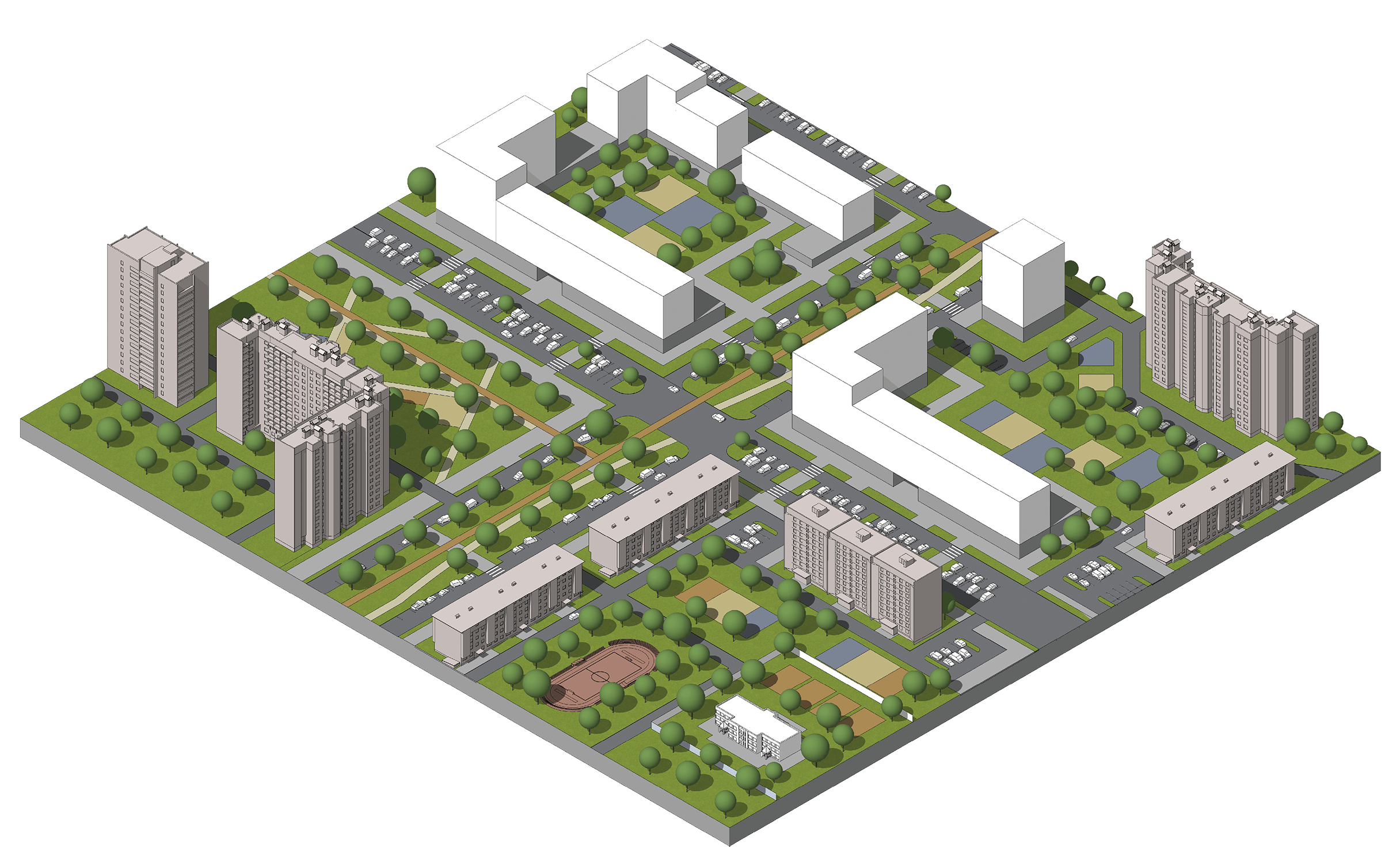 The third chapter is devoted to new ideas on improvement and renovation. They are based on special principles: delicate integration into the environment, maintaining a coherent architectural image, thoughtful landscaping, convenient access to transportation and social infrastructure and so on. Detailed images were created to illustrate the modern approach to city planning. The book explains how to arrange lawns and gardens, how to design parking and how to organize dog parks. All the ideas are accompanied by comprehensive drawings.