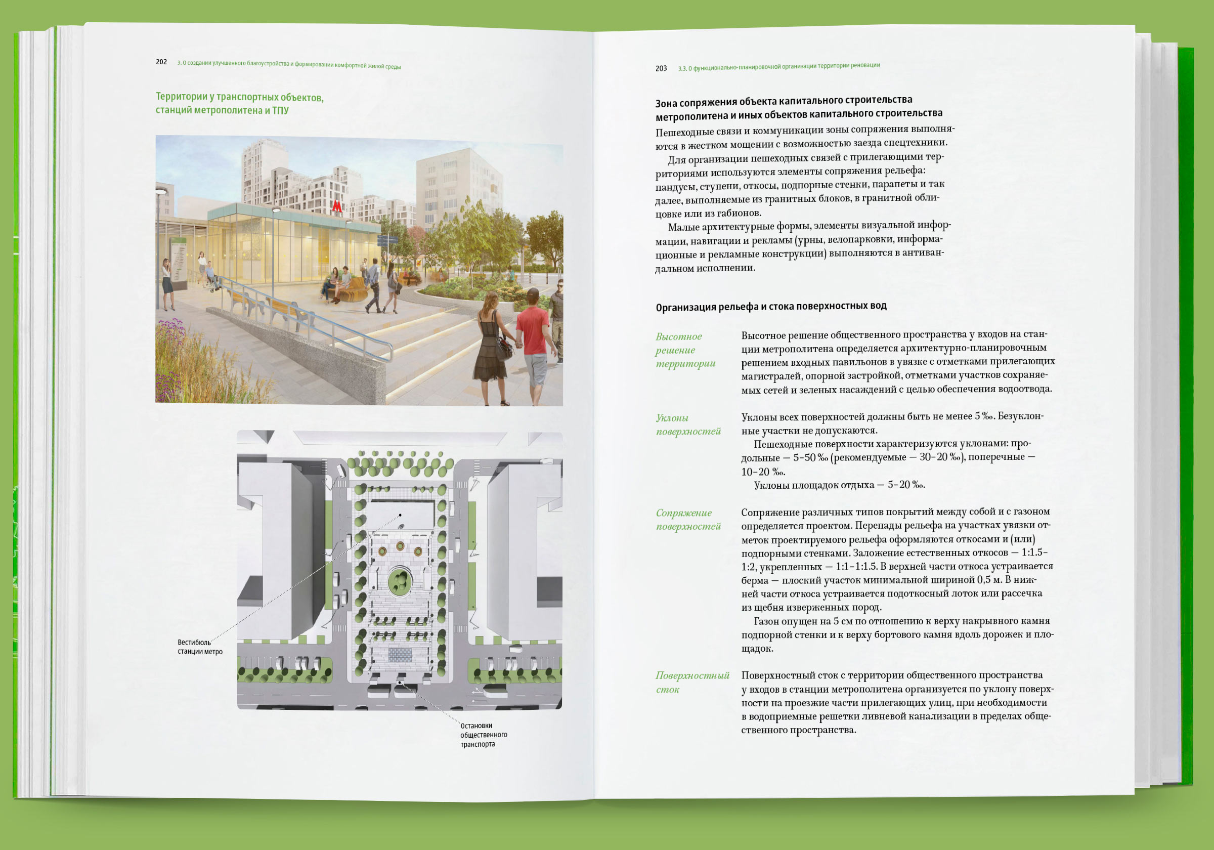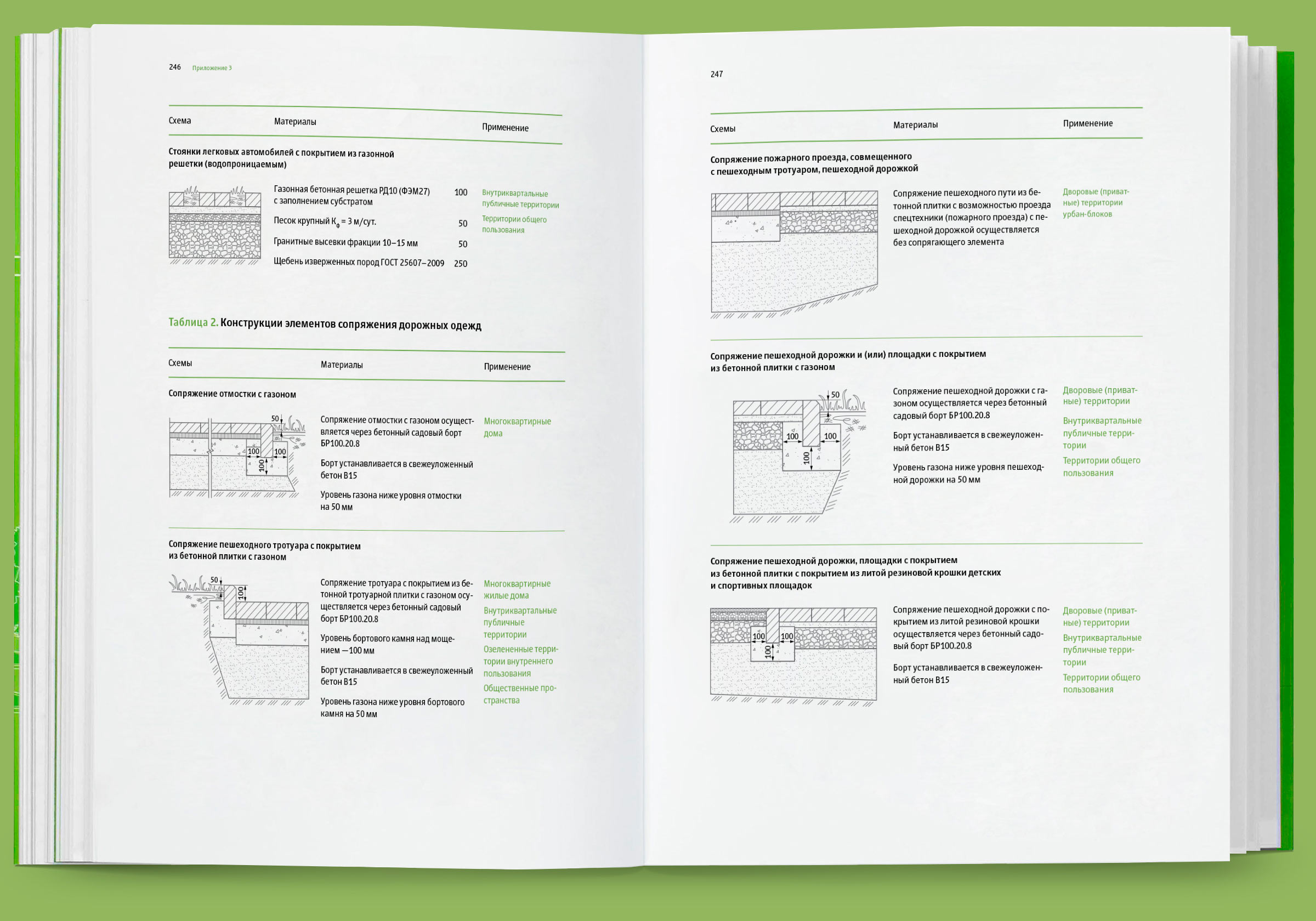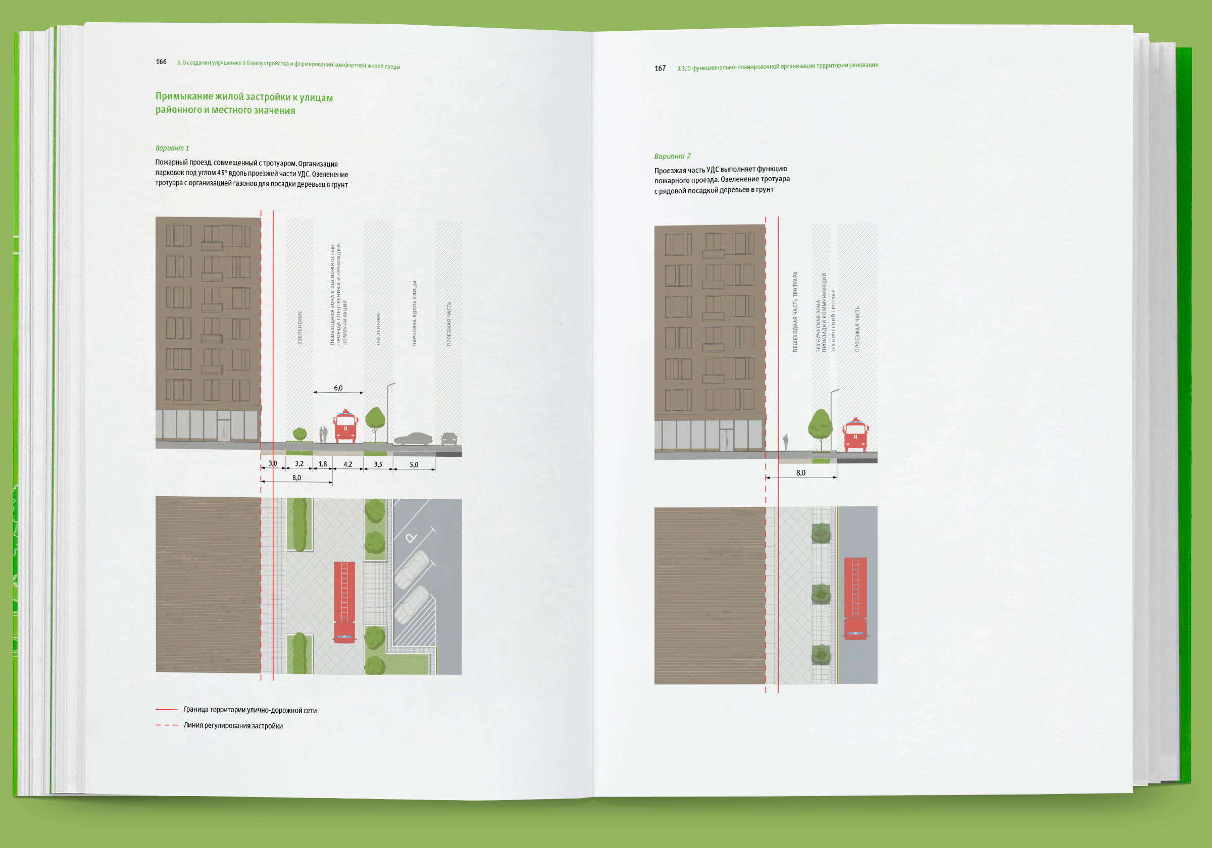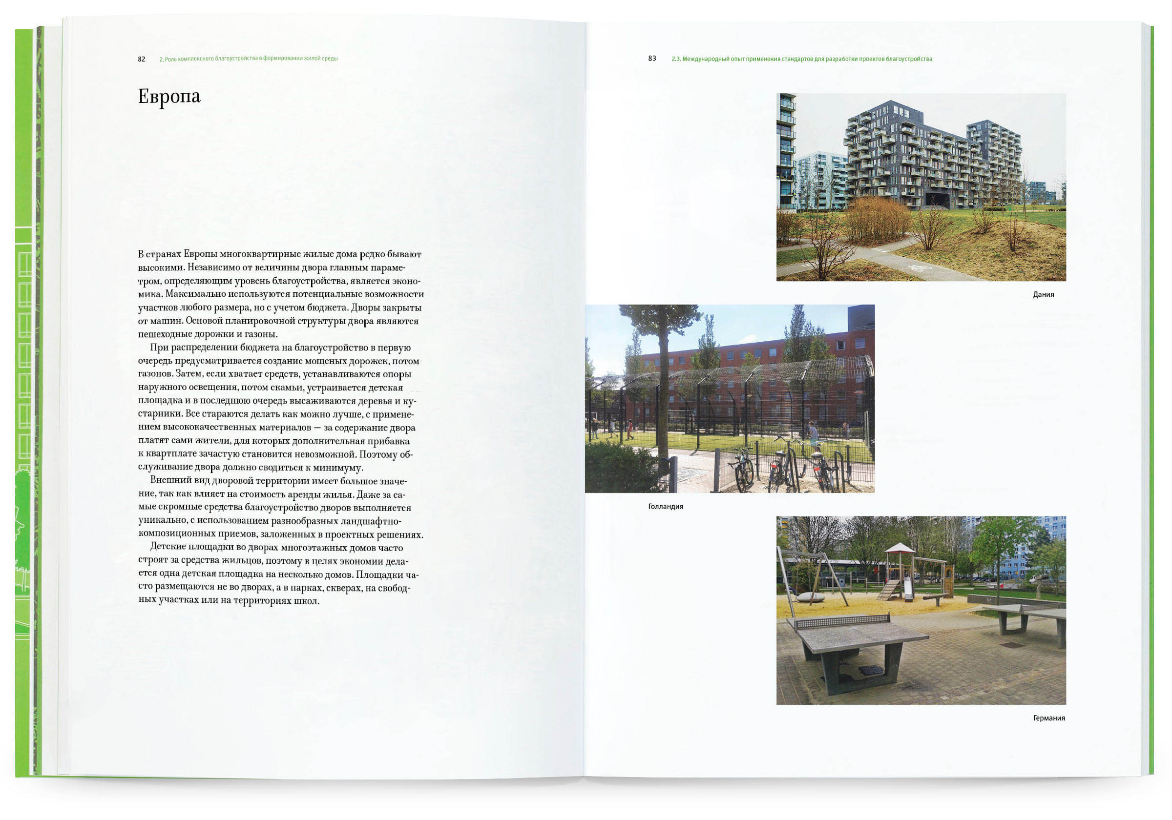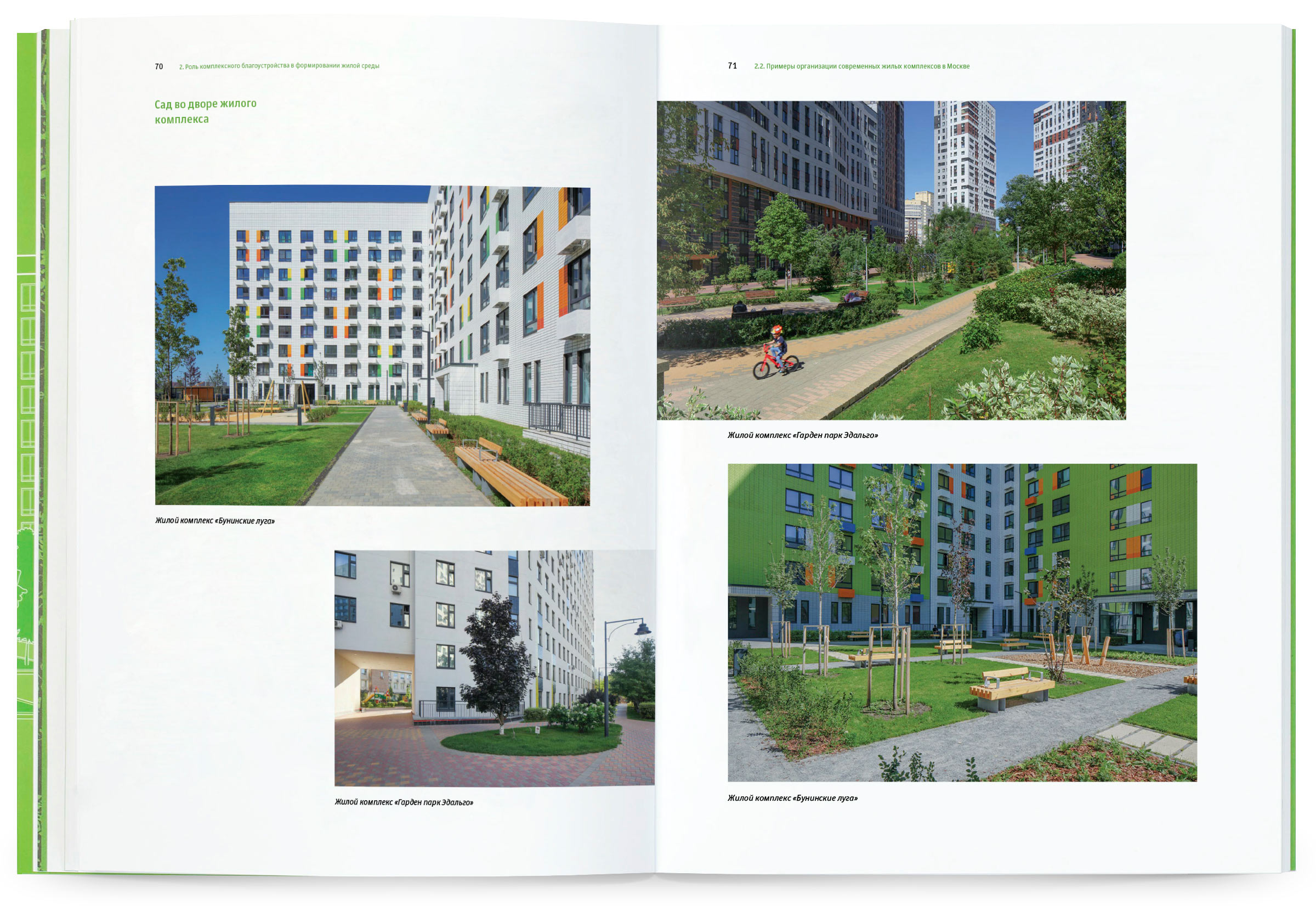 No less fascinating are the real examples of modern residential complexes with their courtyards, gardens, children’s playgrounds and sports grounds. Photos in the second chapter of the book confirm that urban planning does not merely exist as a theory but is actively applied in real life. It also mentions the experience of other countries as it’s always interesting to compare the standards in use in the UK, Australia, the United States and other countries.