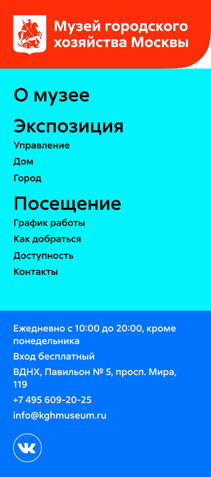 The Museum of City Services is a place where city objects familiar to every resident of Moscow are presented from the most unexpected sides. Information about process nuances and interesting facts about public services are combined here with the most advanced technical innovations. A website that encourages to visit the museum to see it all with your own eyes was created in the studio.