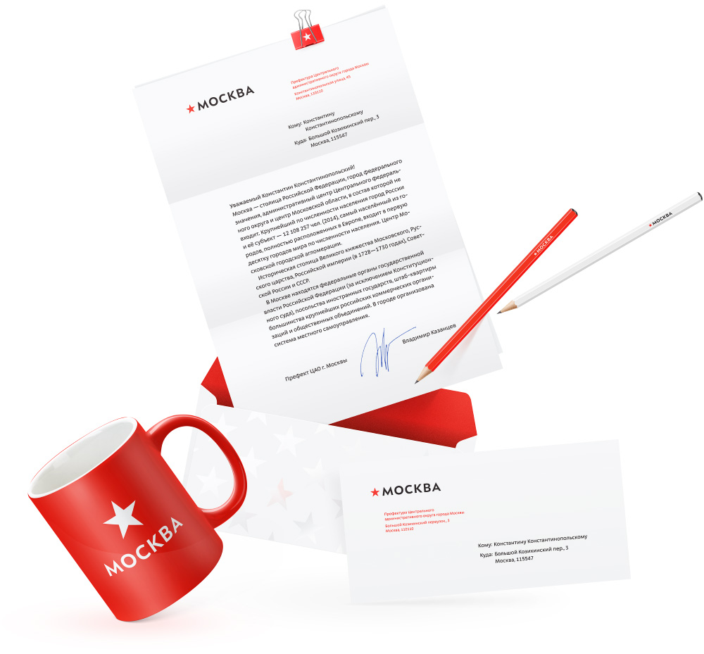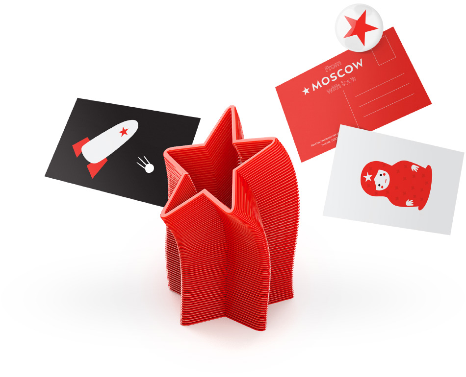 Now the star is the official symbol of Moscow. The visual identity elegantly employs the red accent, black text and white background for a balanced composition.