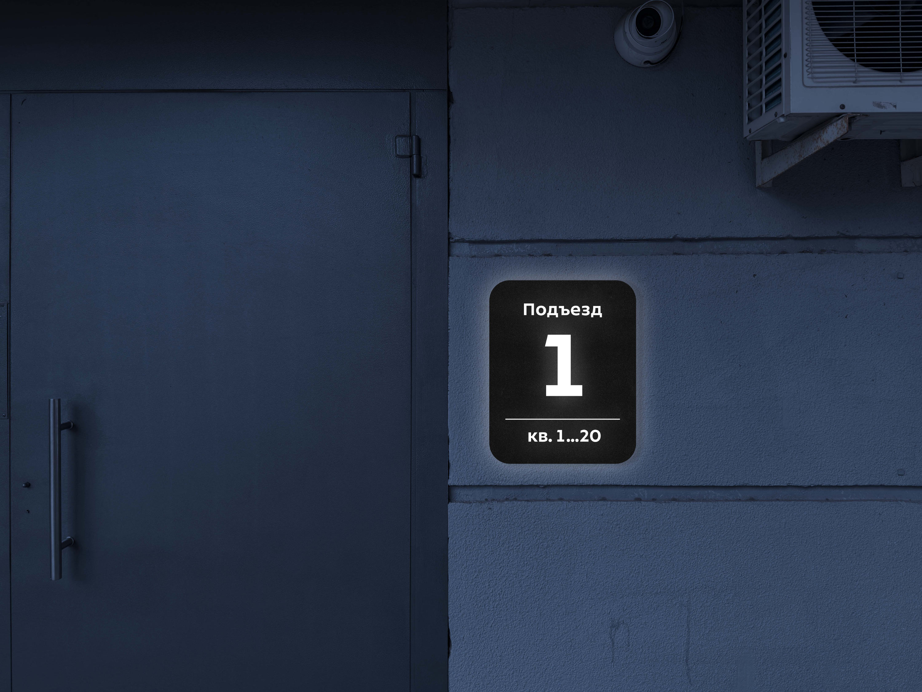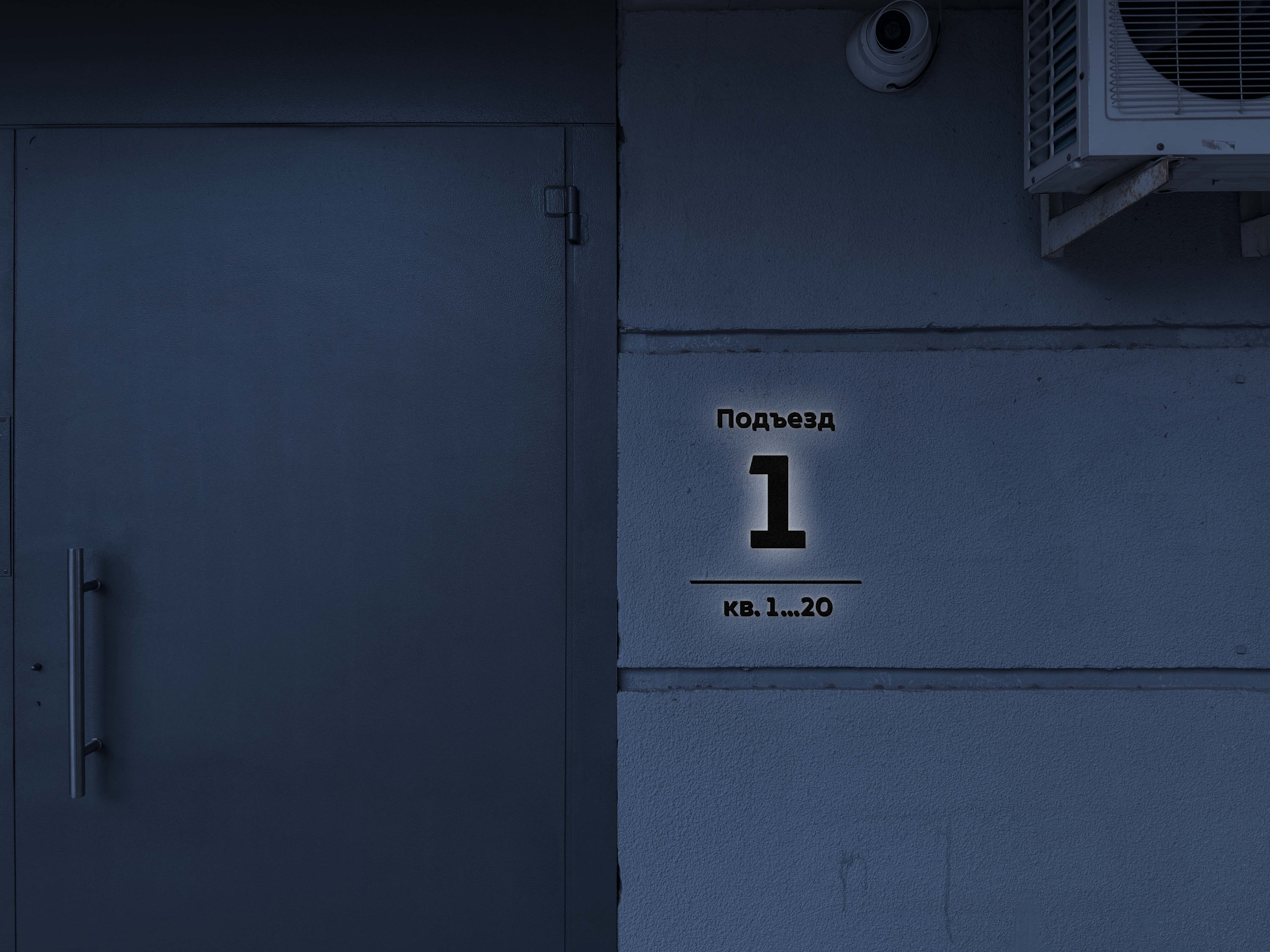 The plates come in several versions depending on the chosen architectural solution and available budget. The set includes classic flat variants, versions with built-in lightboxes for nighttime illumination, metal symbols and volumetric boxes in the shape of individual letters and numbers.