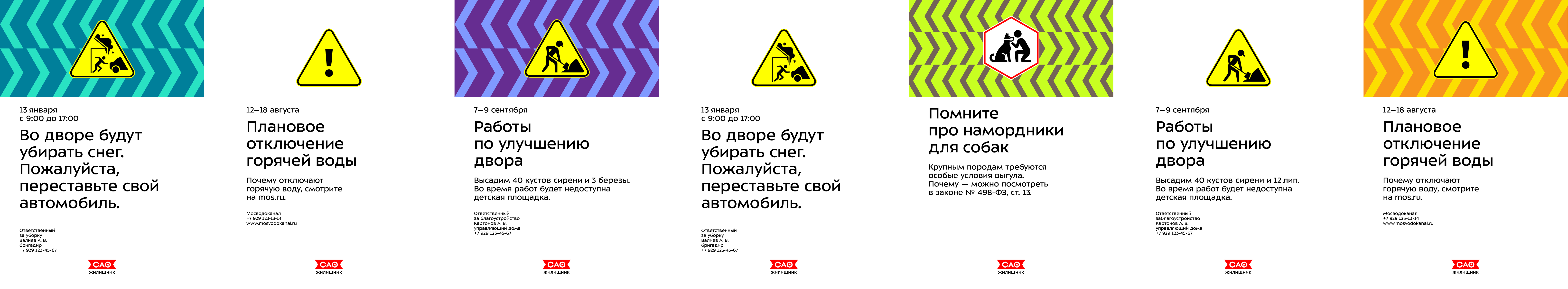 For larger boards installed in courtyards and public spaces, a dynamic modular grid was developed. It defines the layout of announcements on the board and the design of the informational materials themselves.