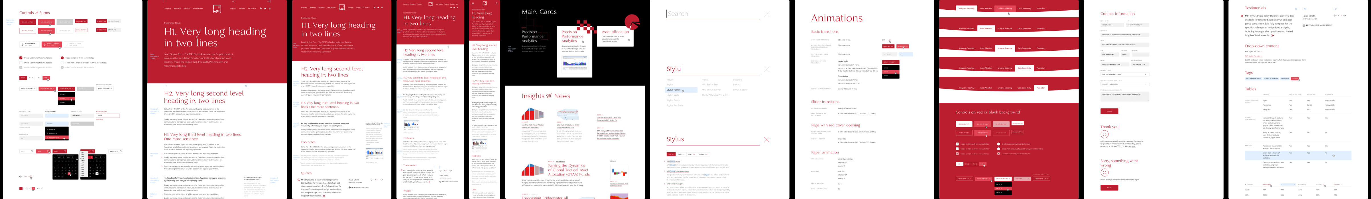 The products and services navigation page draws the most attention: it is completely red with an endless carousel of reports created by Stylus, the company’s primary software, running on the side.