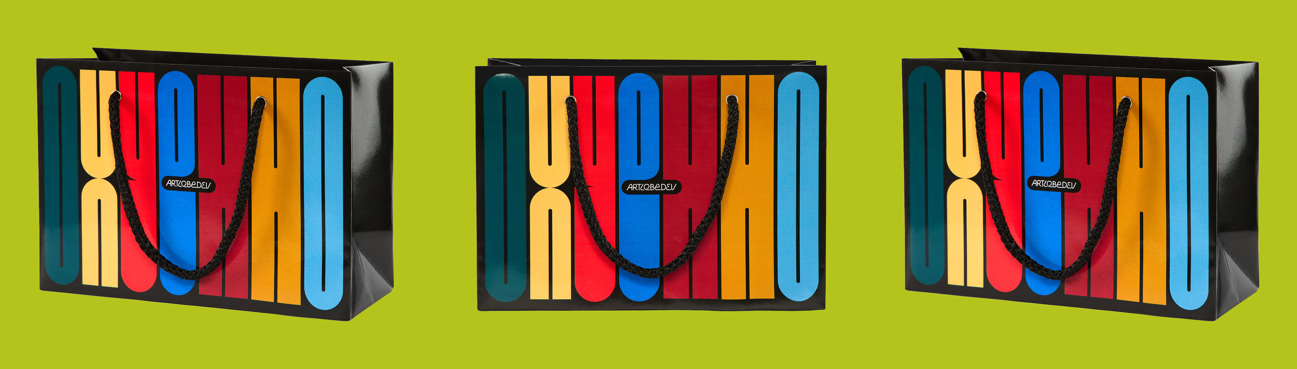 The second edition of our absolutely awesome gift bag is now adorned with bright modernist lettering featuring the well-known Russian word.