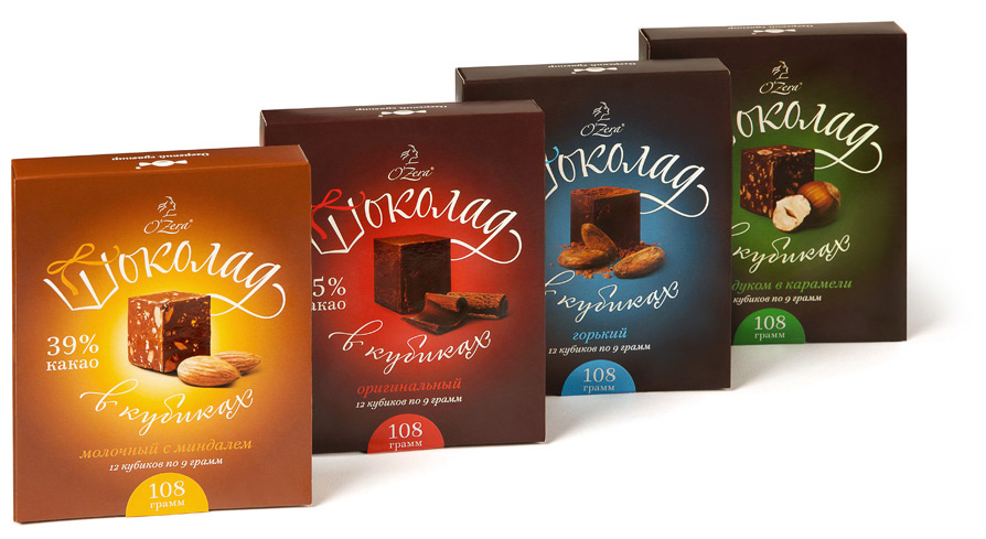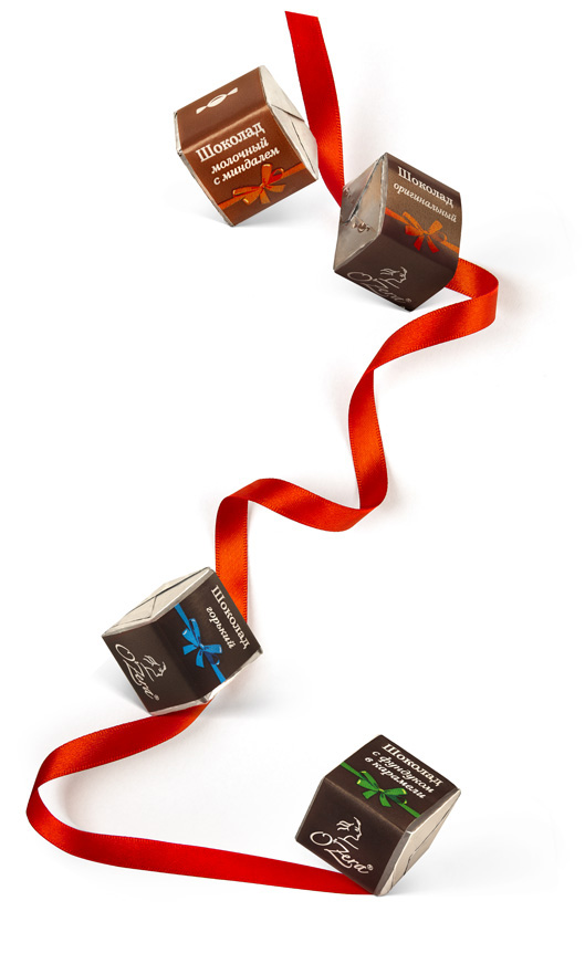 There’re coming new nine-gram chocolates to the market under the O’Zera trademark. The new line has a variety of flavors from milk to dark chocolate. Our studio was commissioned to design a product name, logo, and packaging.